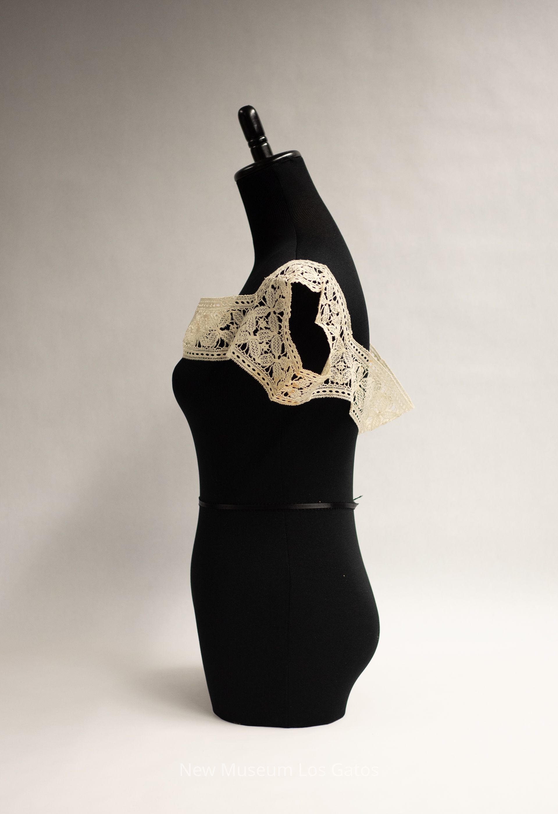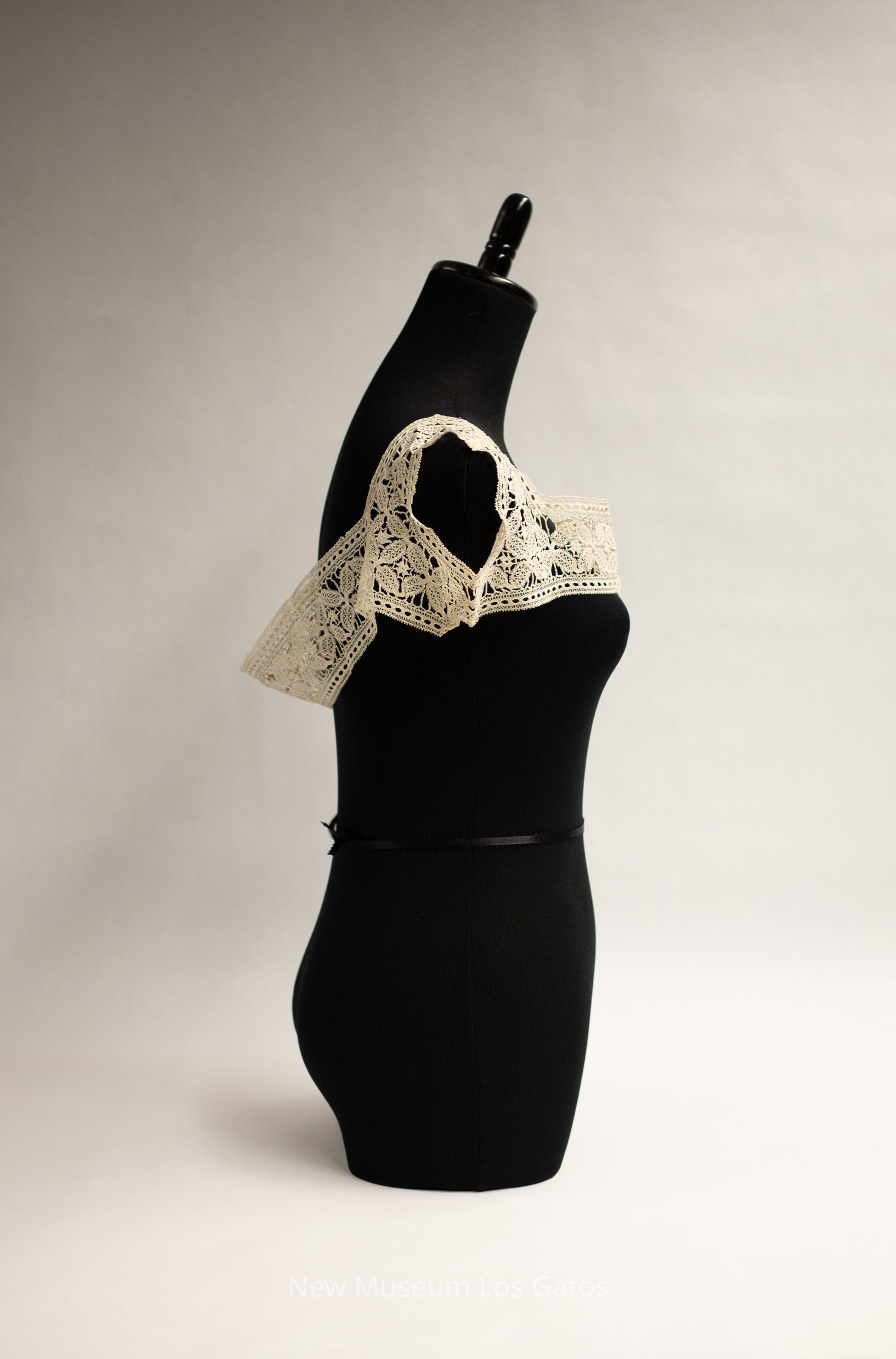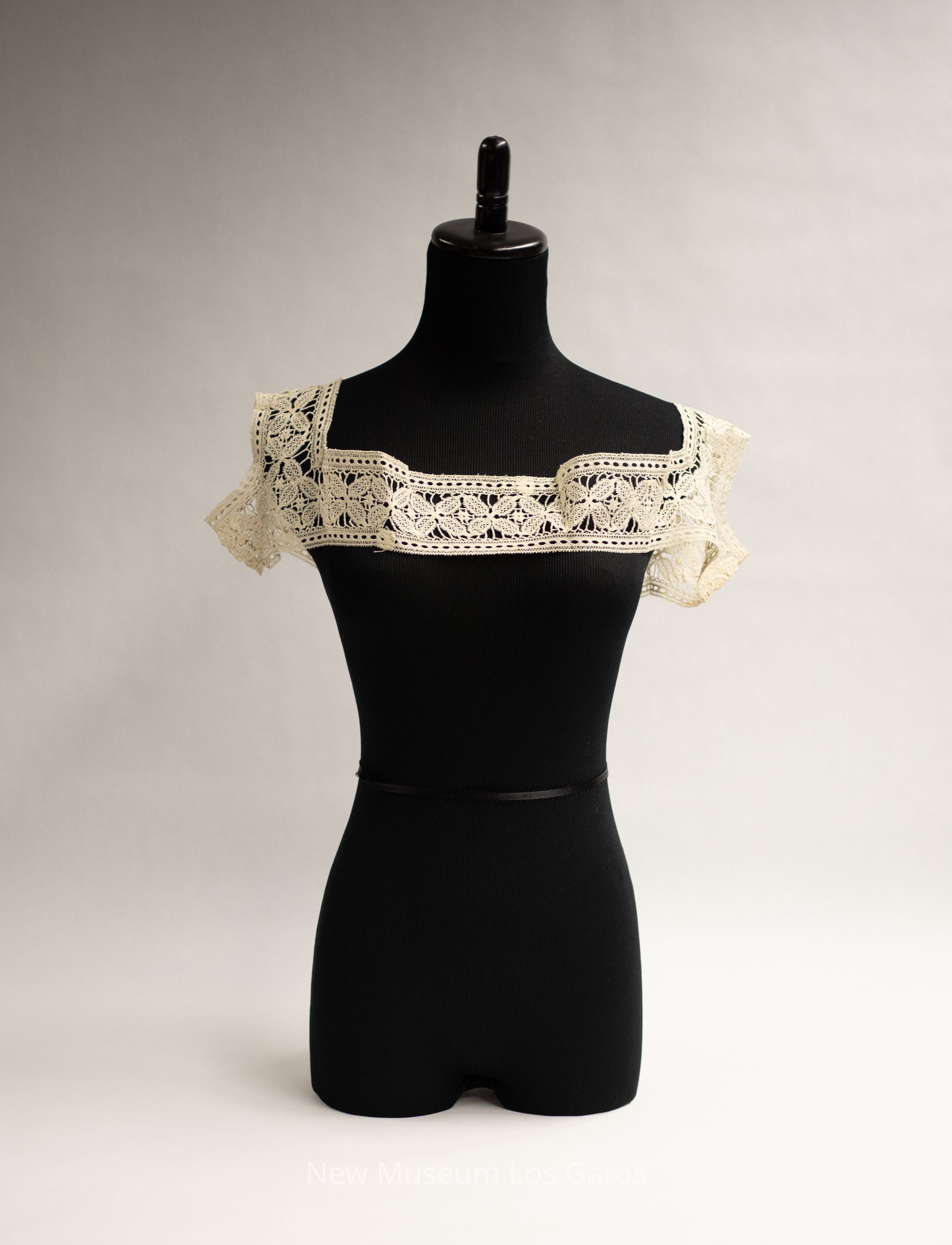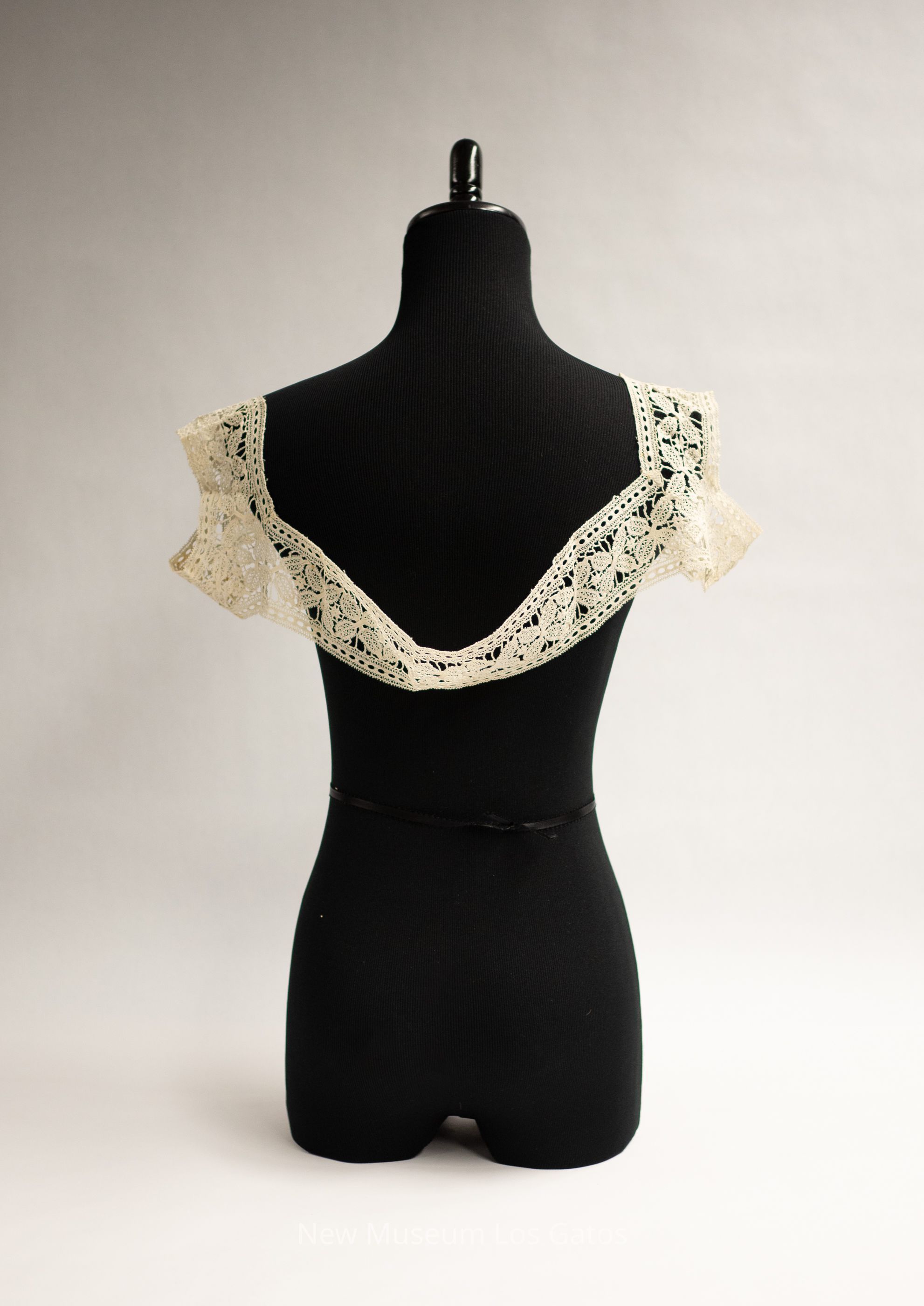 A white, cotton lace yoke featuring a leaf pattern throughout with a circle pattern along the edges.