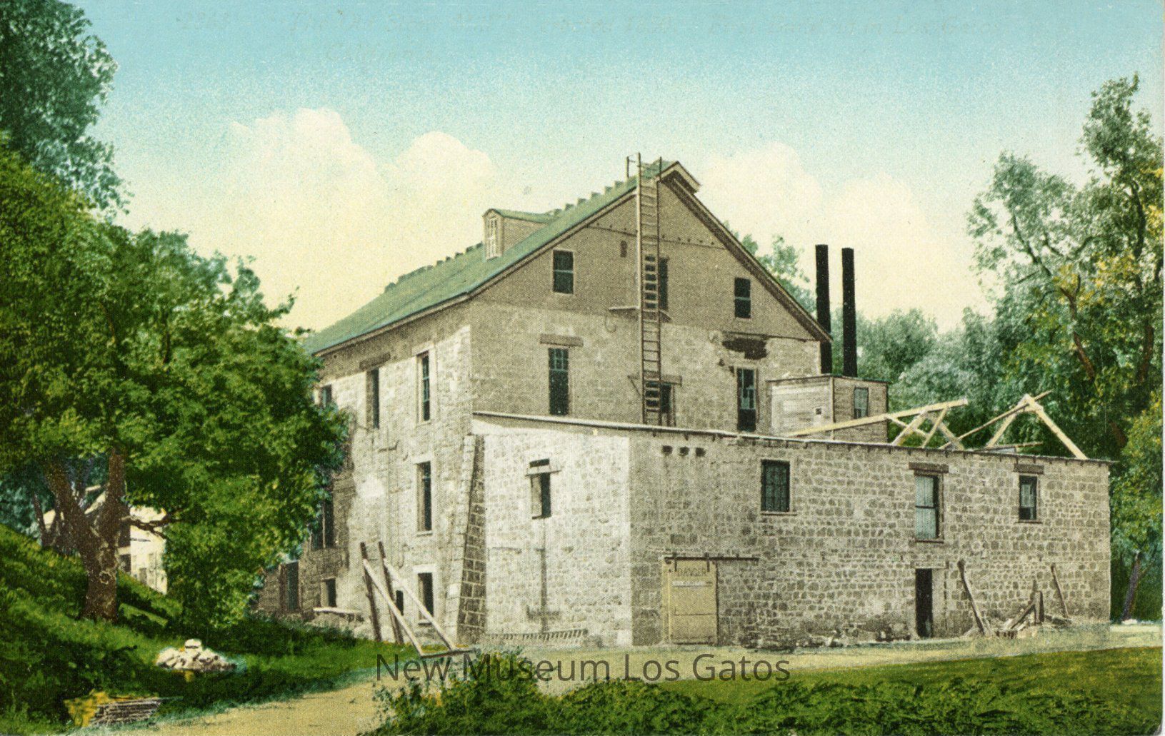 Four postcards featuring a color illustration of Forbes Mill. In the illustration, Forbes Mill is centered, with trees off to the left of the mill. Three of the postcards feature an inscription along the top, with a mill that has red/brown tones. The fourth postcard does not have the inscription, and the mill has brown/gray tones. None of the postcards have been mailed.Subject Place