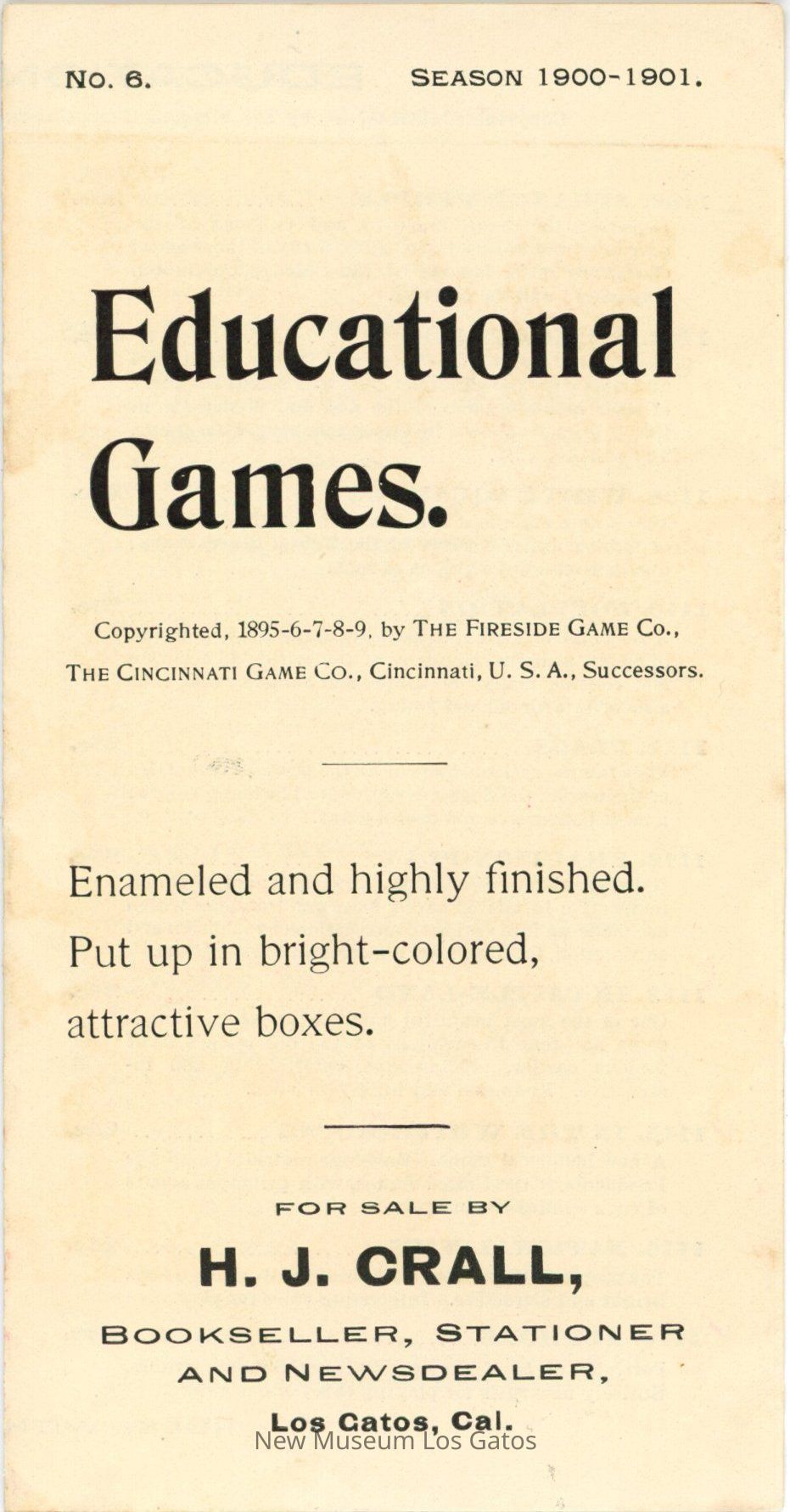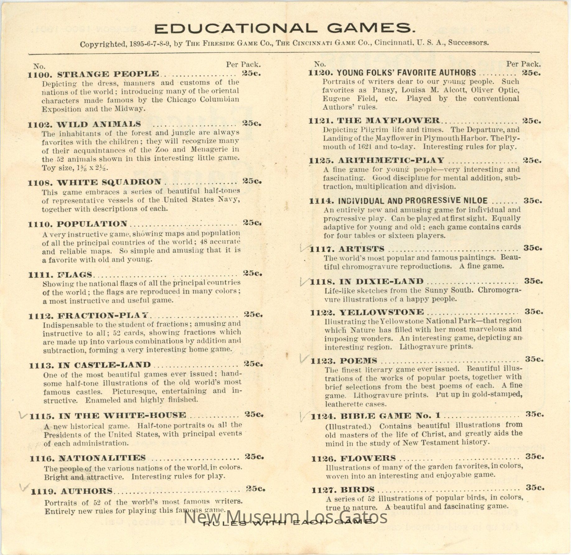 Copyrighted, 1895-6-7-8-9, by THE FIRESIDE GAME CO., THE CINCINNATI GAME CO., Cincinnati, U.S.A., Successors.