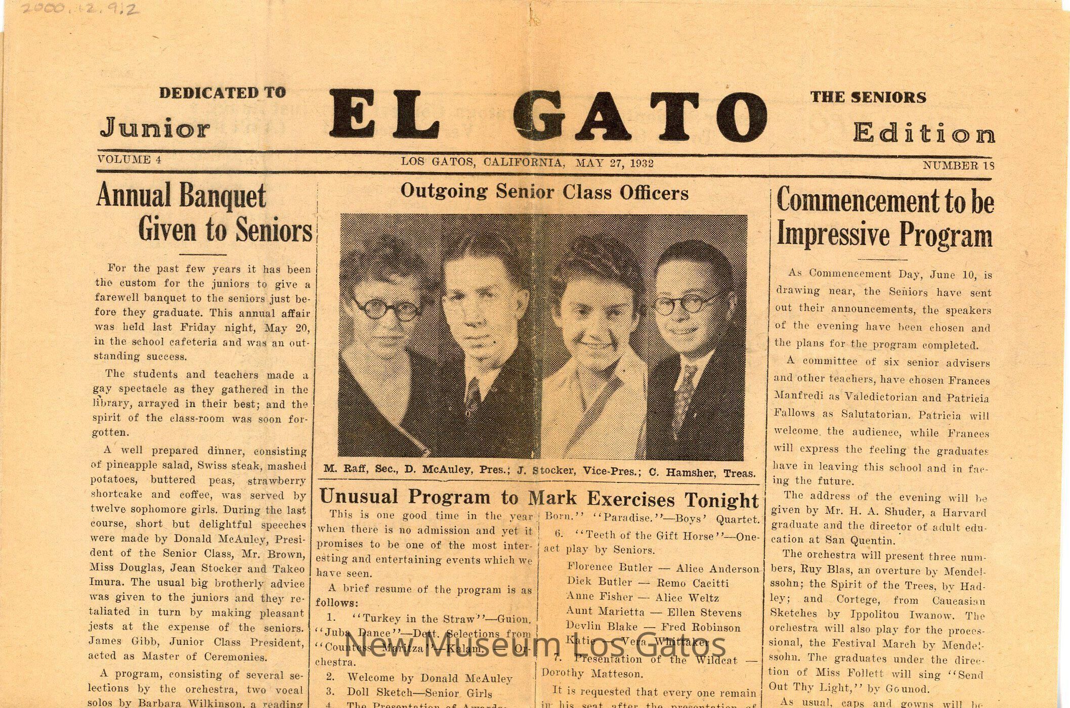 A copy of El Gato from May 27, 1932, published by the students of Los Gatos High School.Collection