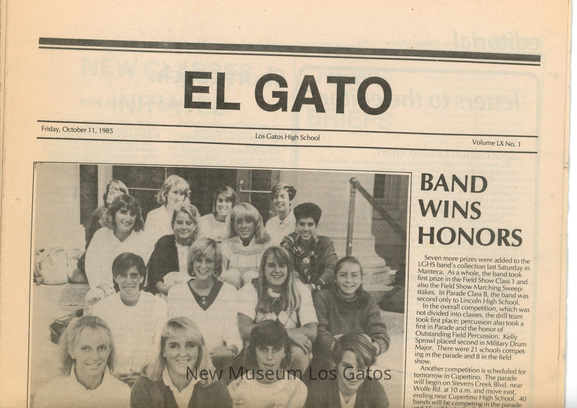 A copy of the October 11, 1985 edition of El Gato, Los Gatos High School's newspaper.Collection