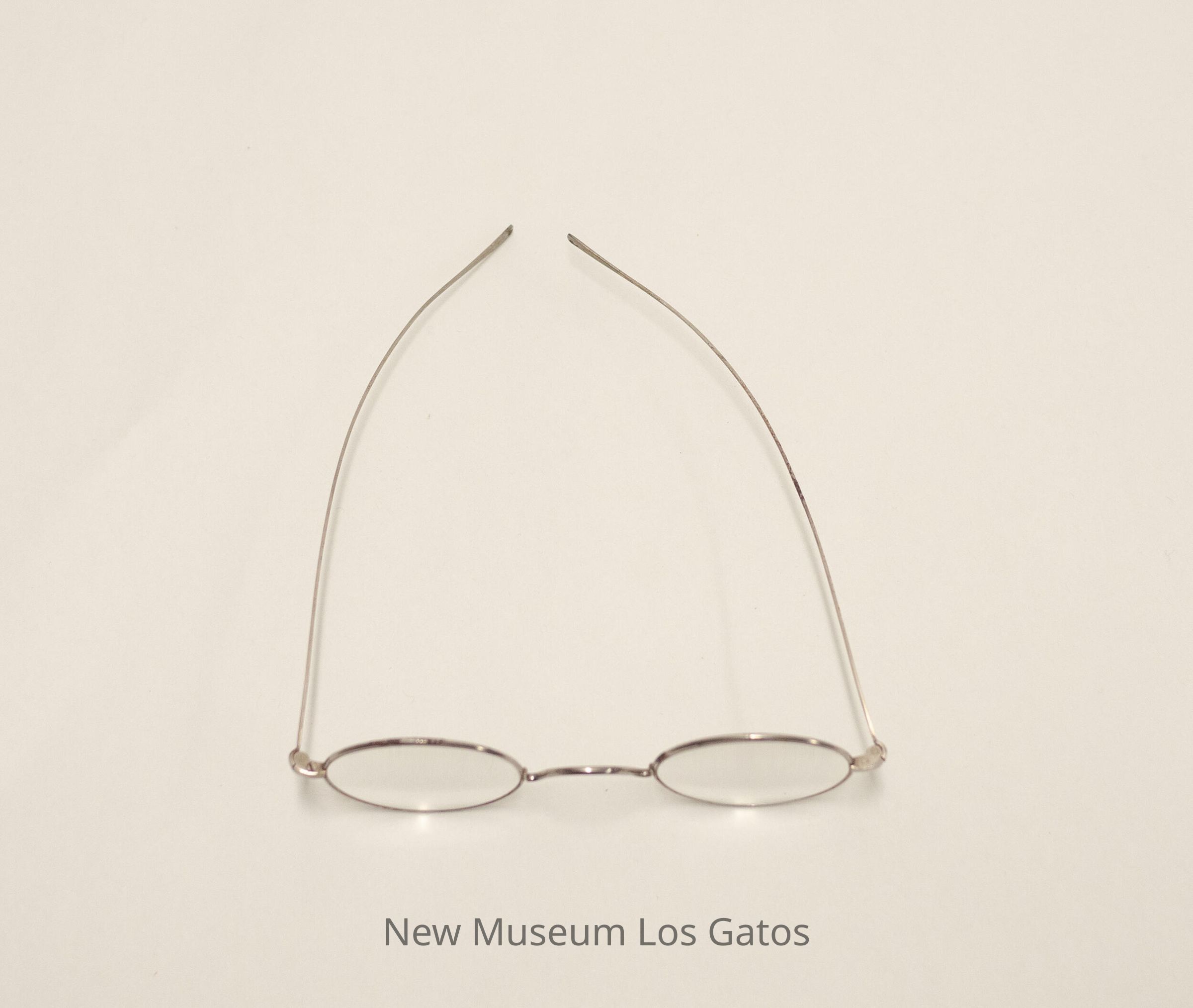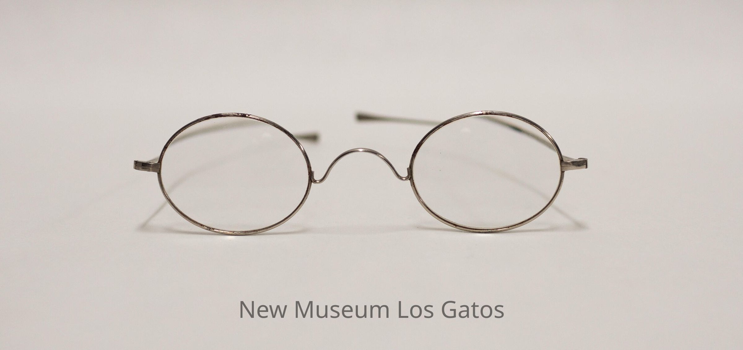 A pair of silver, wire-rimmed glasses. The lenses are circular, and the temple arms are straight, and widen slightly at the end.