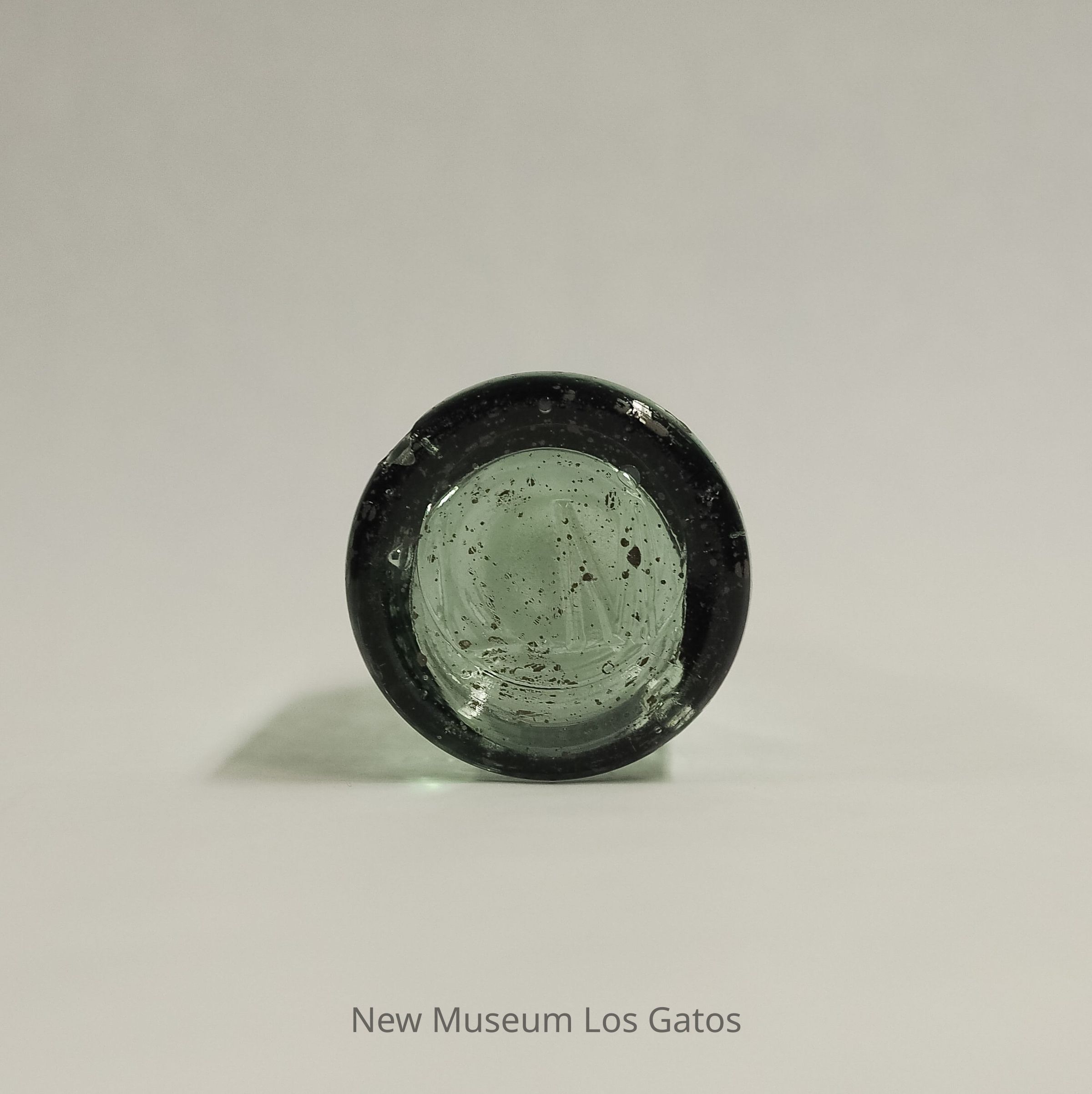 A clear bottle with a blue-green tint from Los Gatos Soda Works. Manufacturing information is embossed on one side.Collection