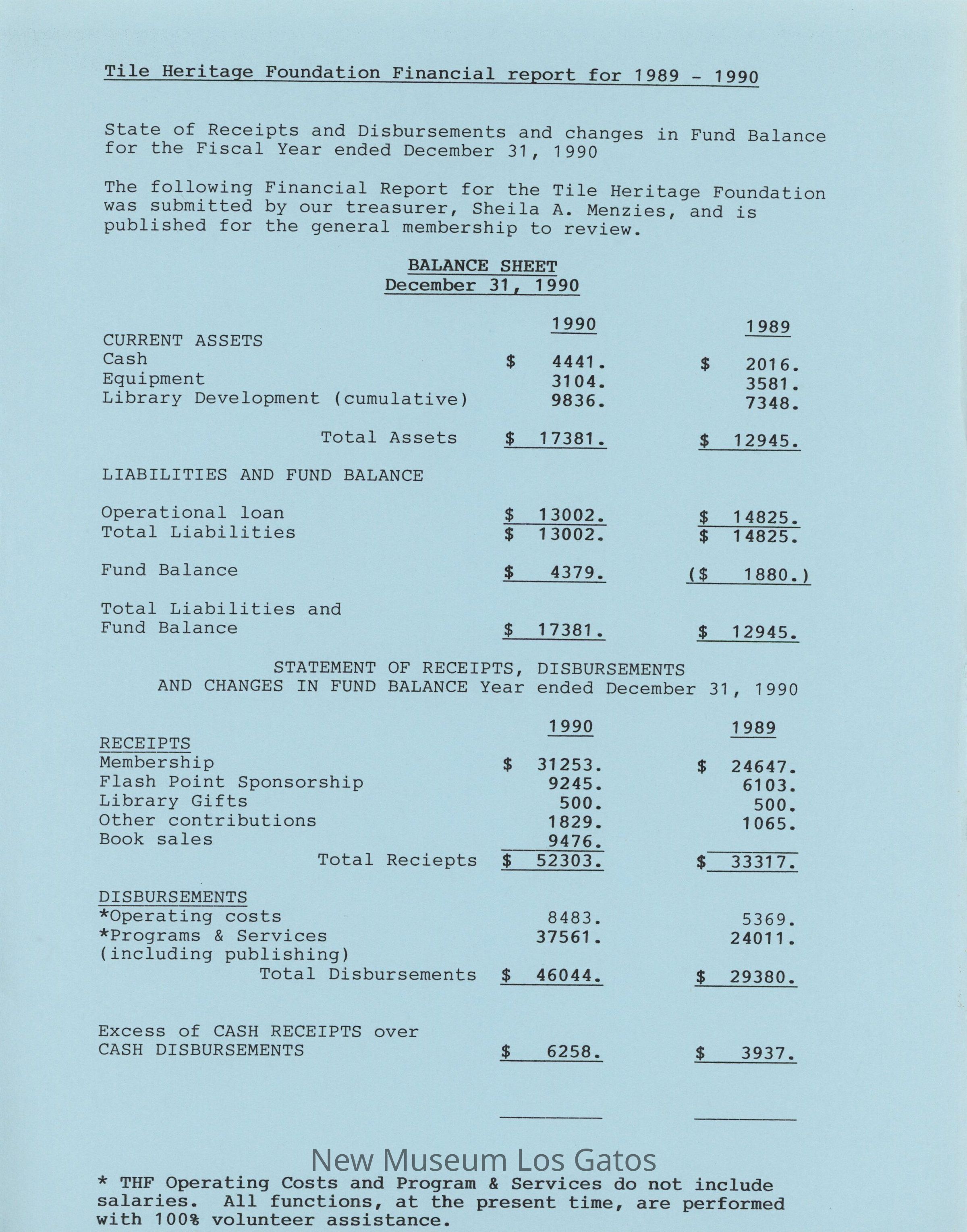 advertisements, photographs, subscription forms, trivia games, and other organization-related news. The newsletter also contains a financial report of the Tile Heritage Foundation for 1989-1990 tucked between the pages.Collection