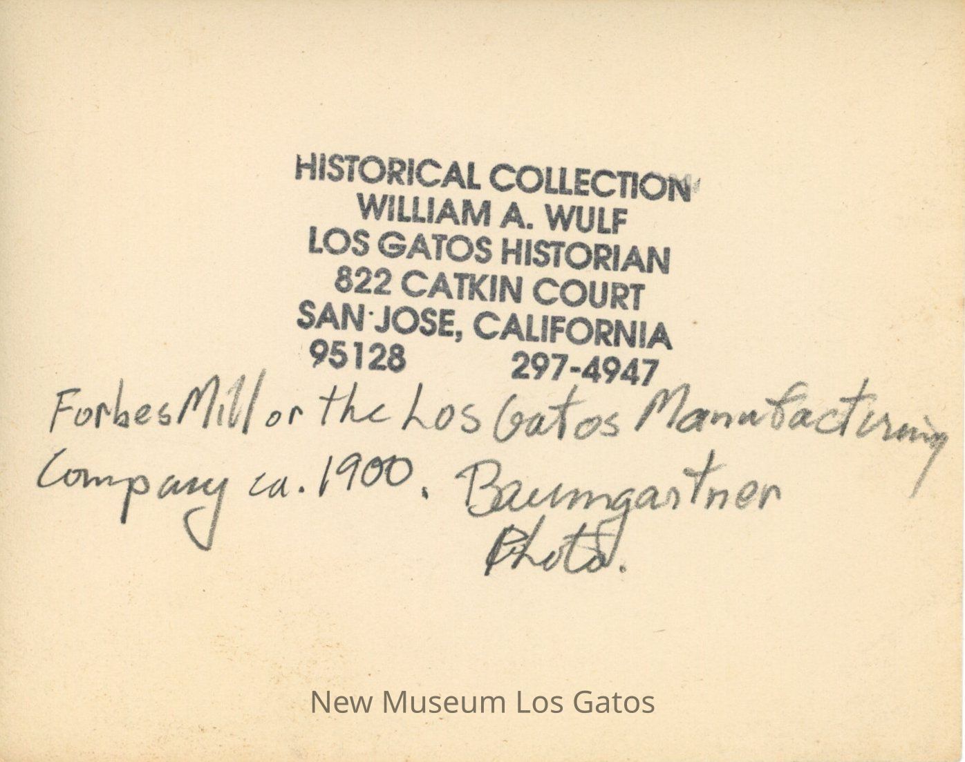 Forbes Mill or the Los Gatos Manufacturing Company ca. 1900. Baumgartner Photo.Language