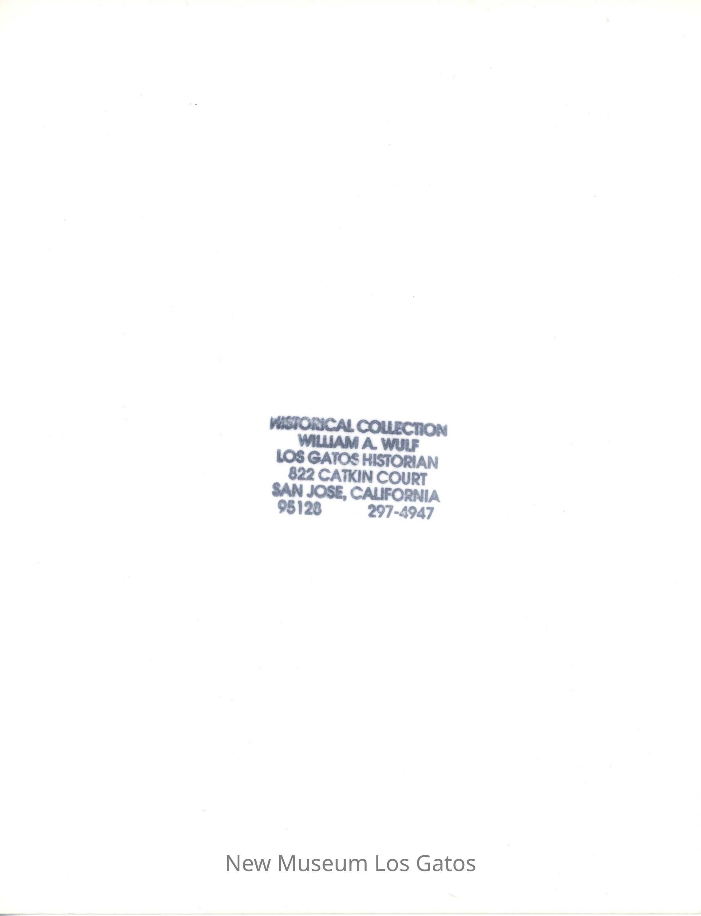 HISTORICAL COLLECTION WILLIAM A. WULF LOS GATOS HISTORIAN 822 CATKIN COURT SAN JOSE, CALIFORNIA 95128 297-4947