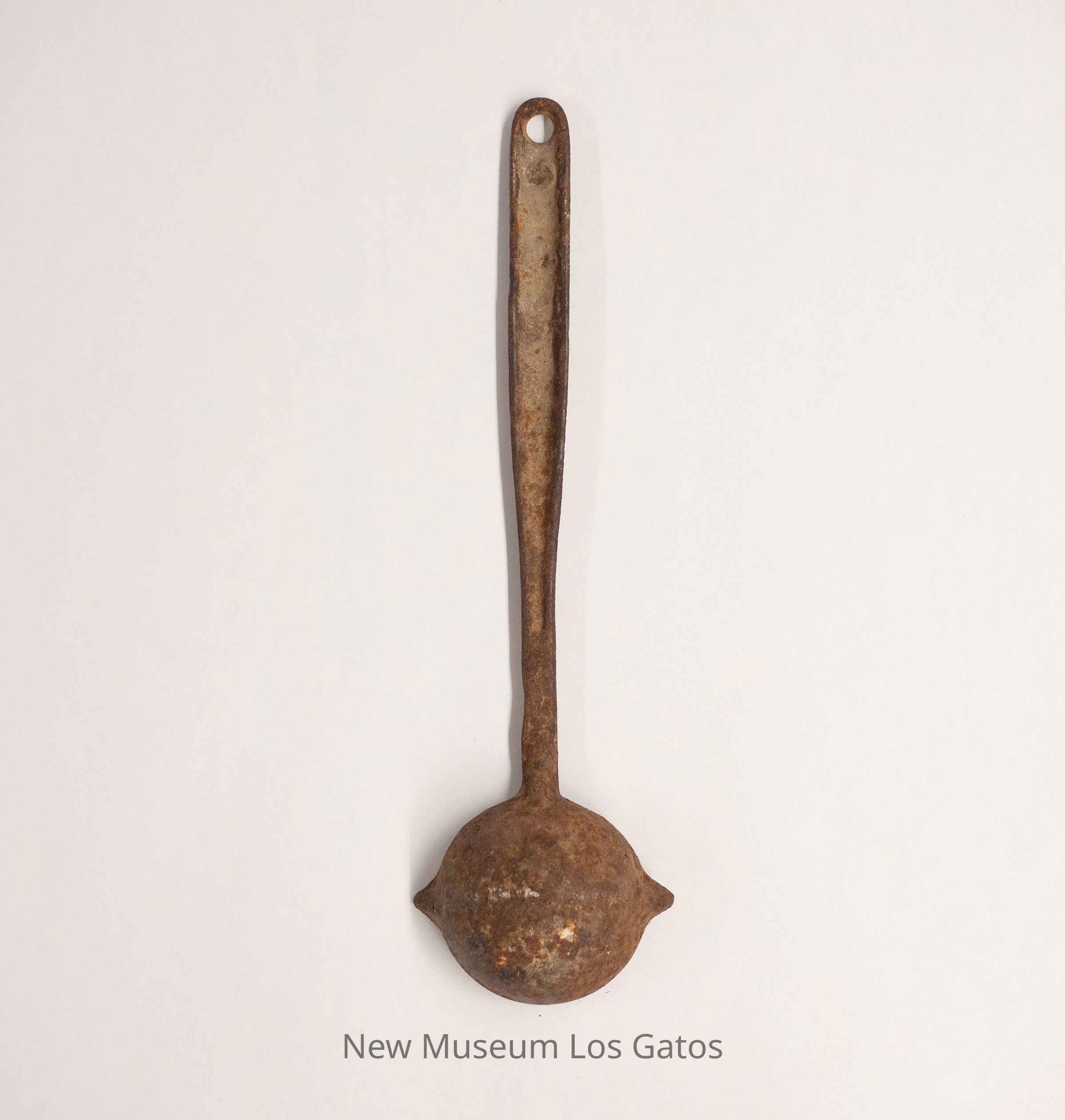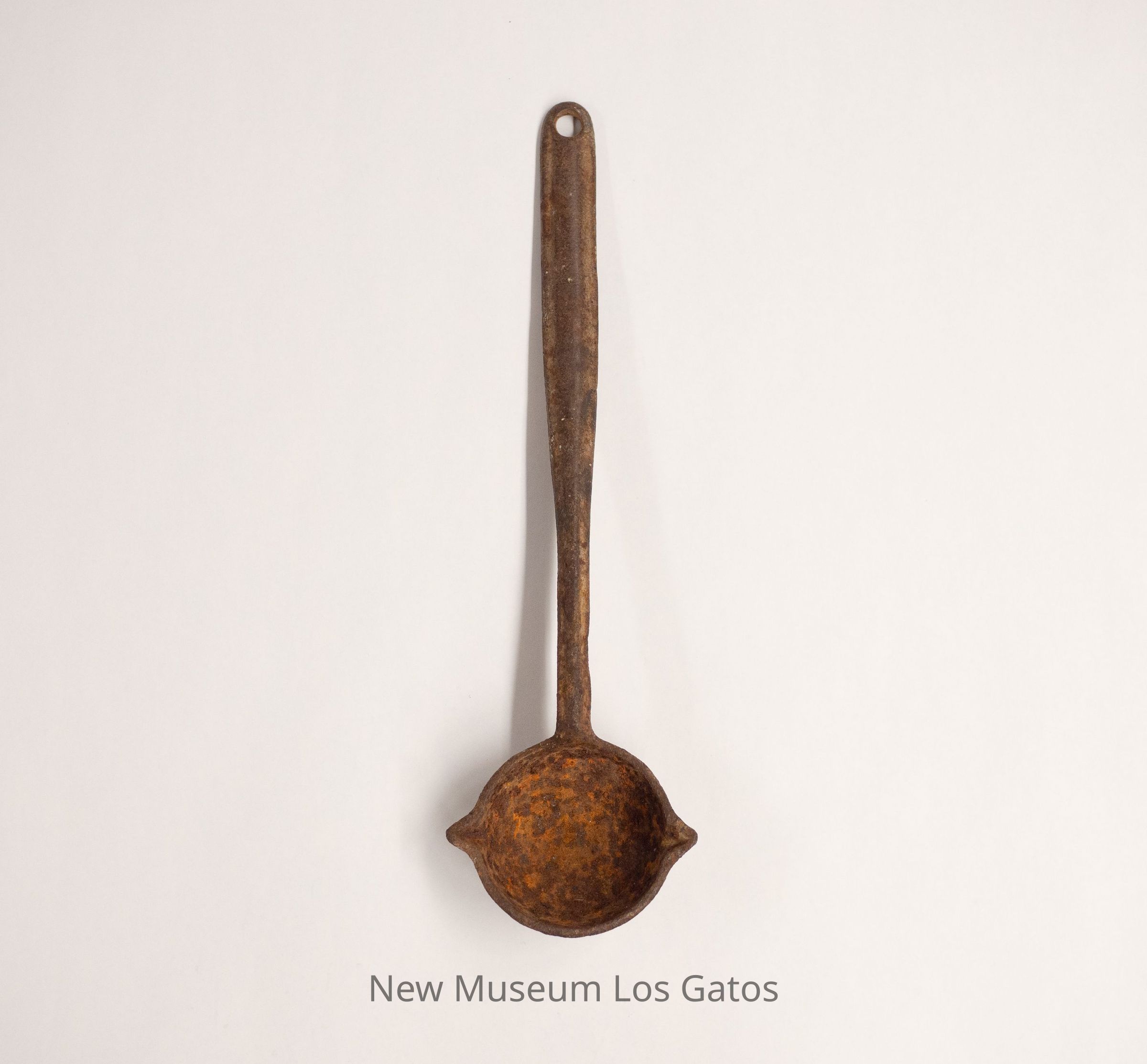 A cast iron ladle. The handle has a hole in the end, and the spoon features two pointed outlets, one on each end.Collection