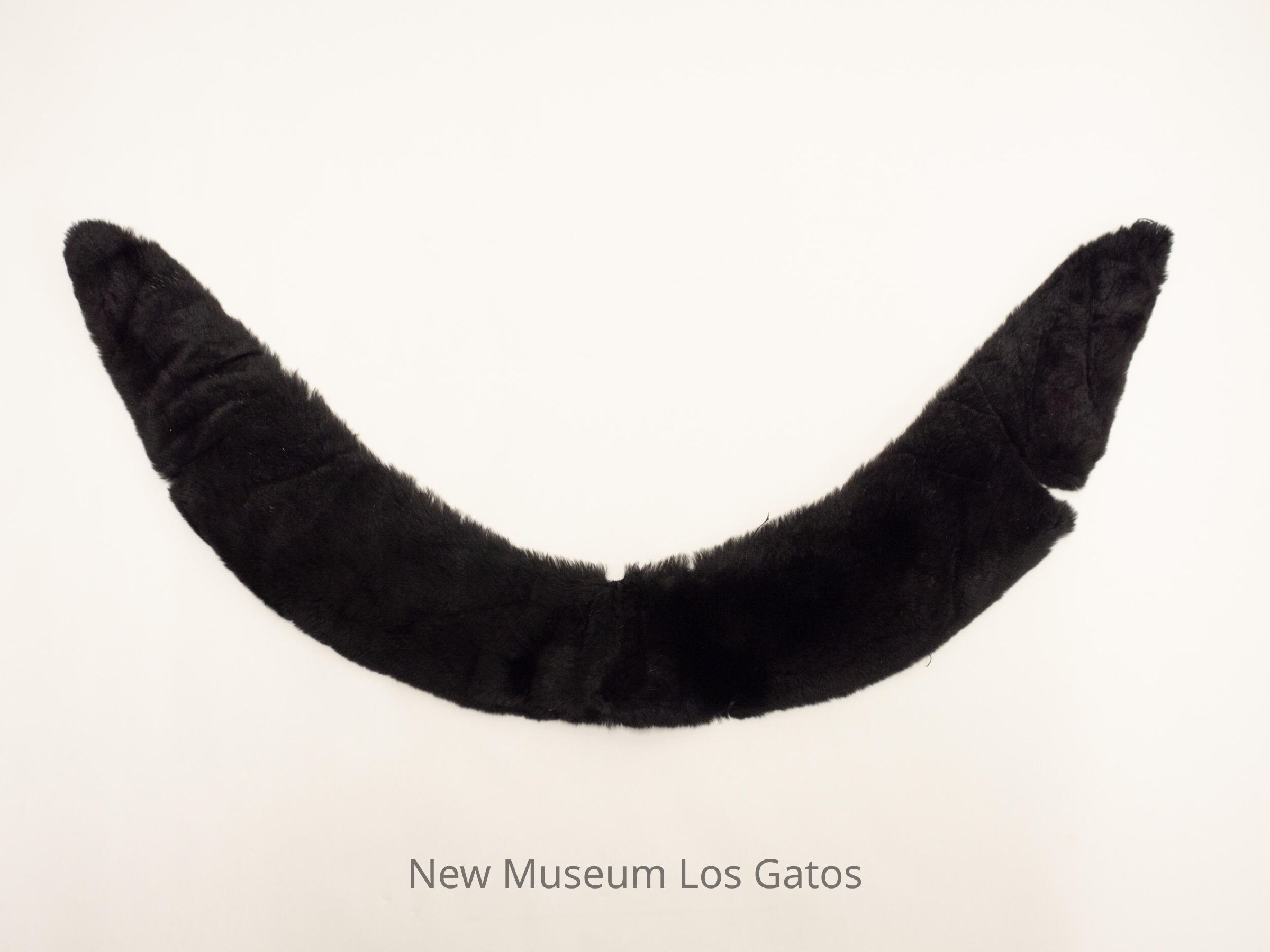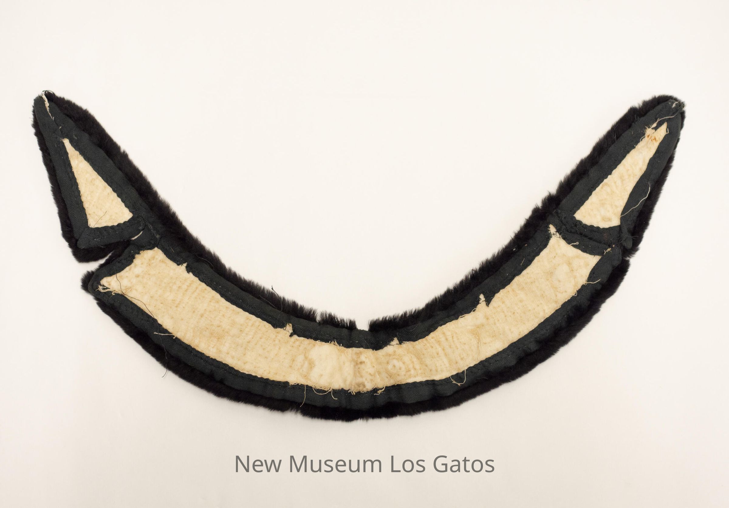 A large, curved collar made out of black fur. The backing consists of cream-colored fabric outlined in dark green fabric.