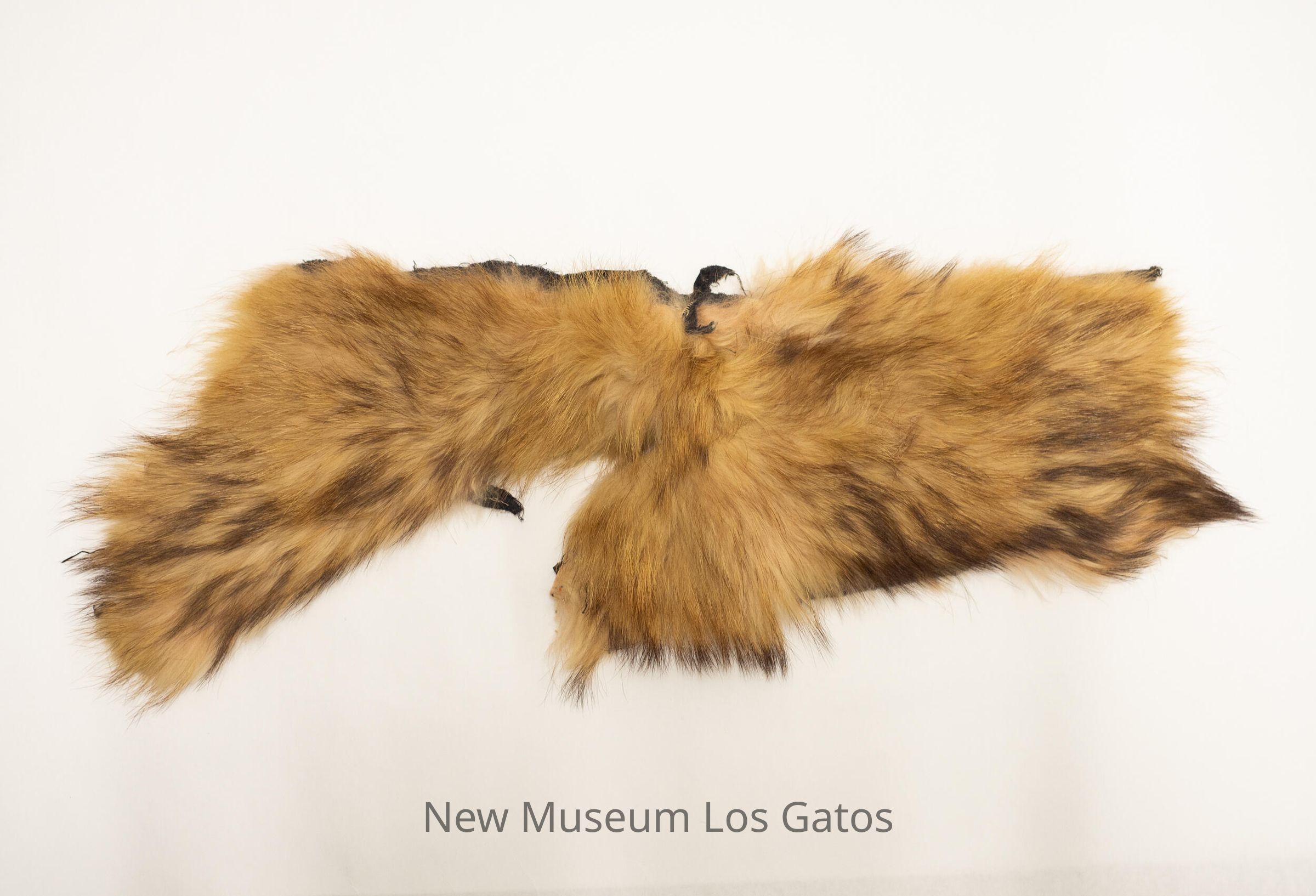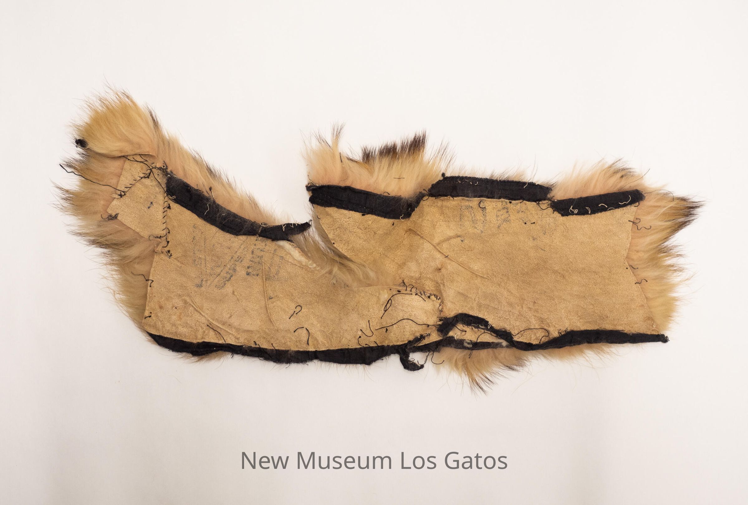 A large strip of dark and light brown fur. The underside of the fur is tan leather/hide with black fabric strips.
