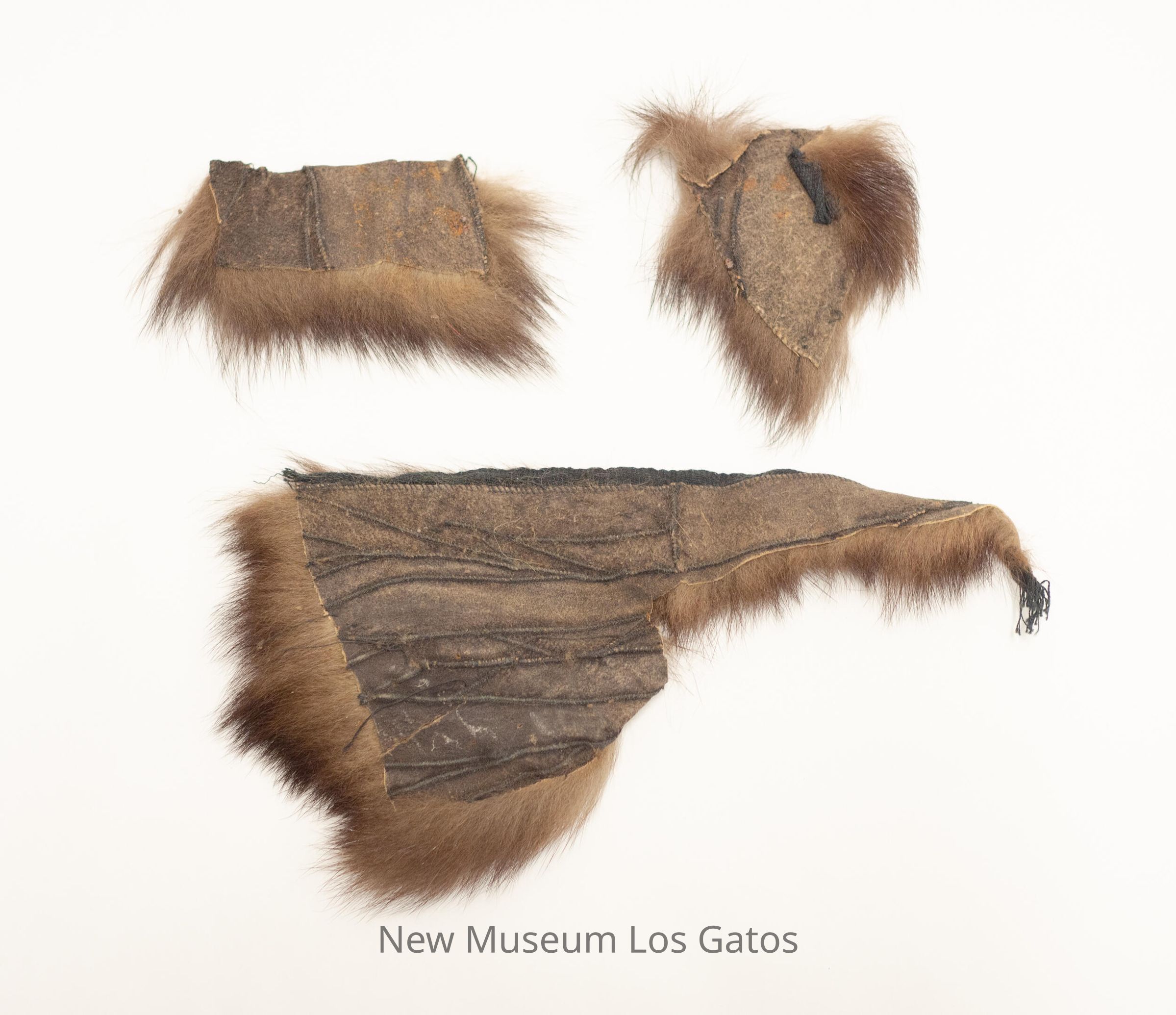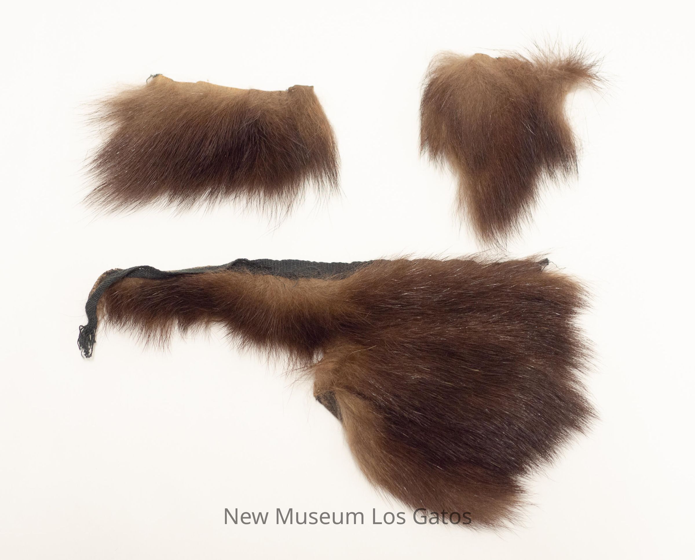 Three individual strips of dark brown fur. One strip is large, and tapers towards one end. The other two are medium-sized and relatively square.