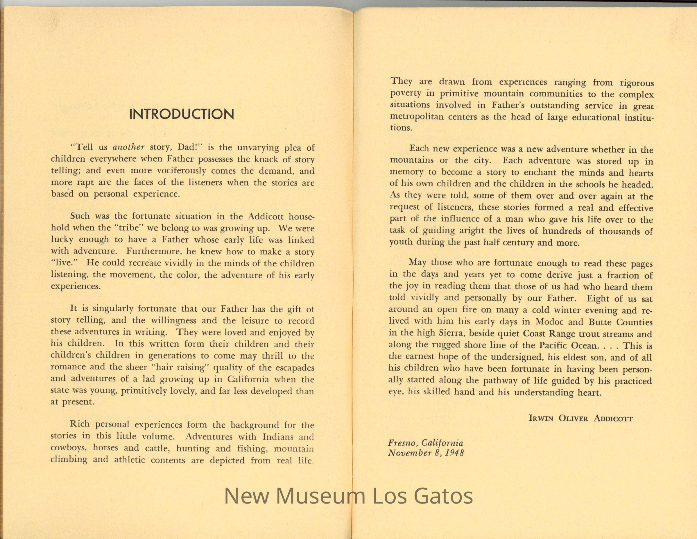 A booklet featuring a collection of short stories about the author's life growing up.Collection
