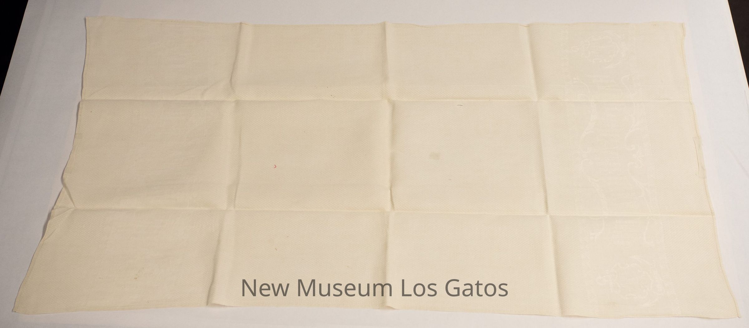 A thin, white, decorative towel, with white embroidery at both ends.Collection
