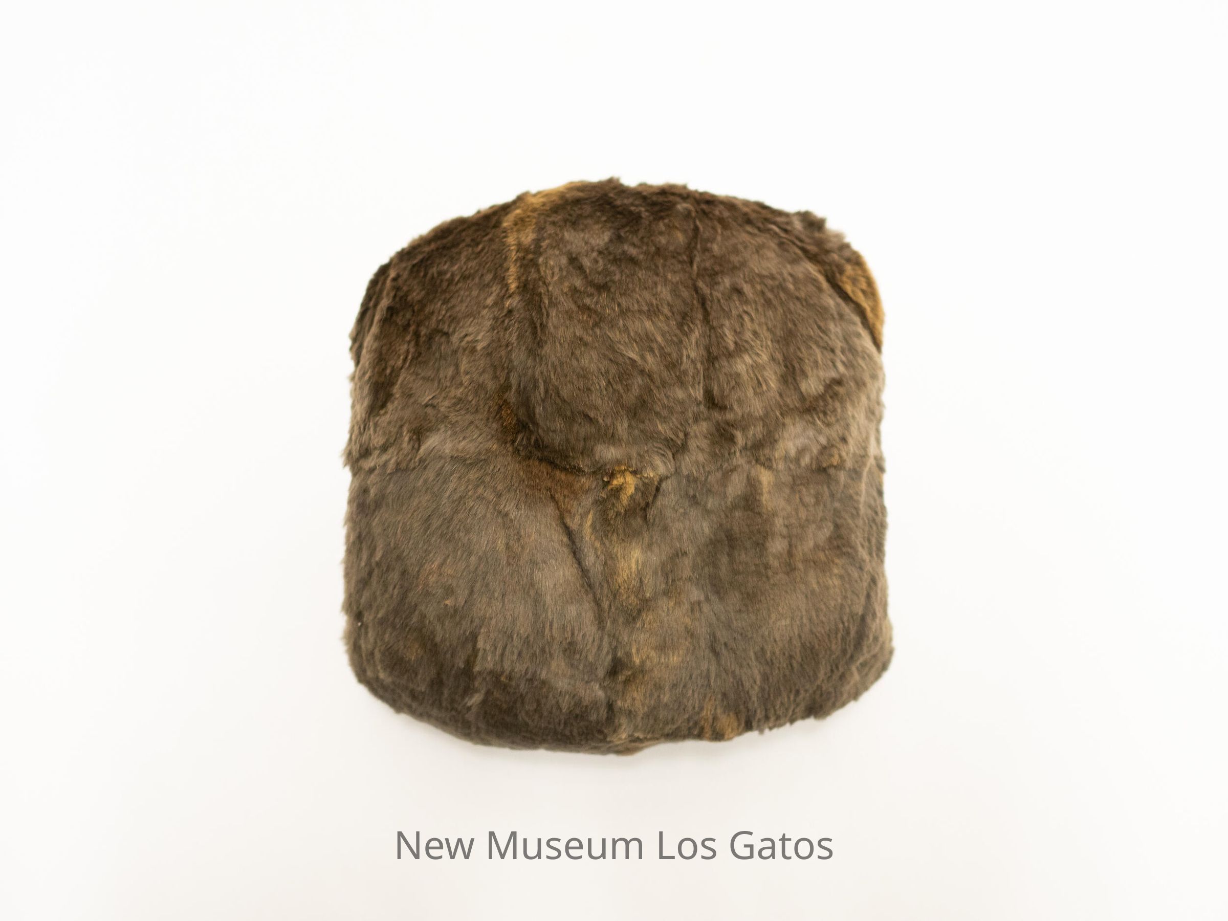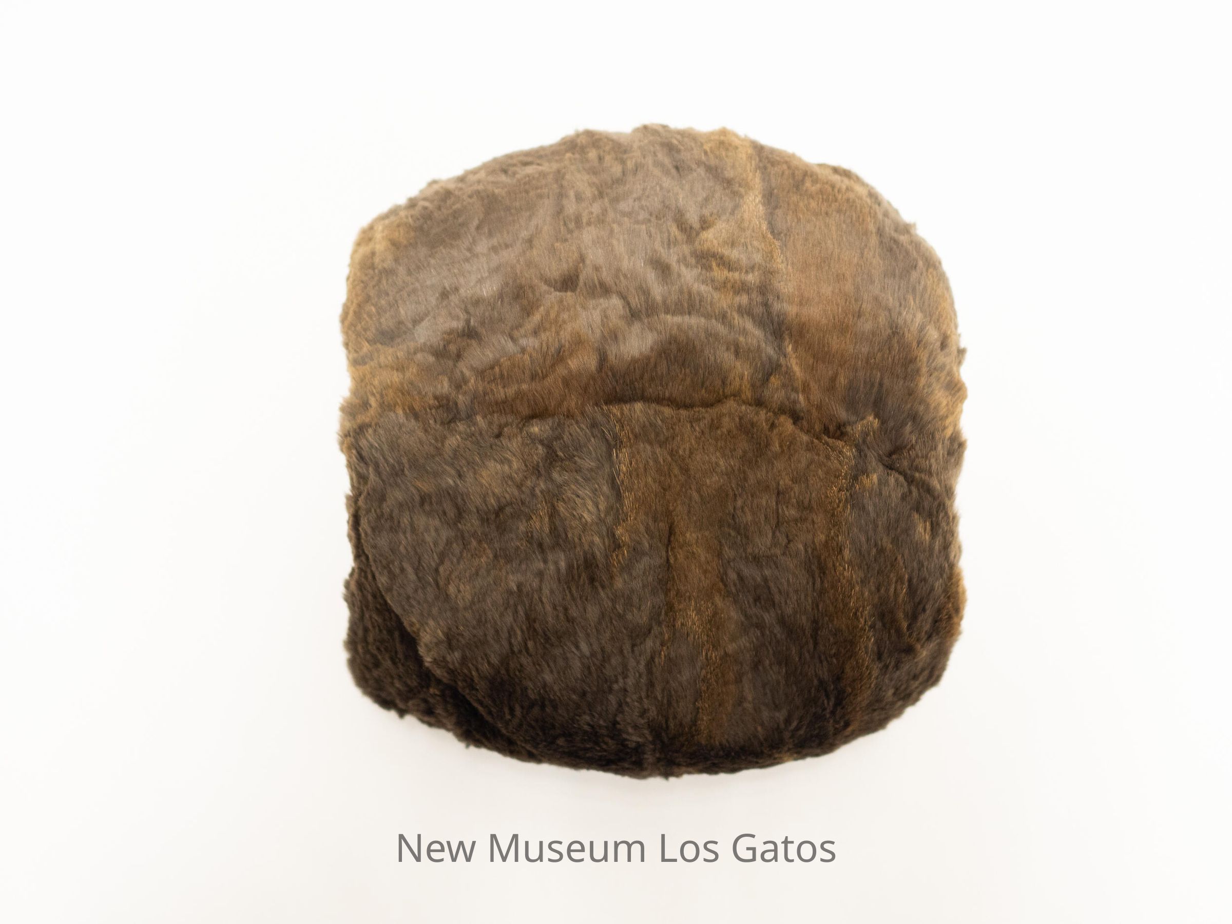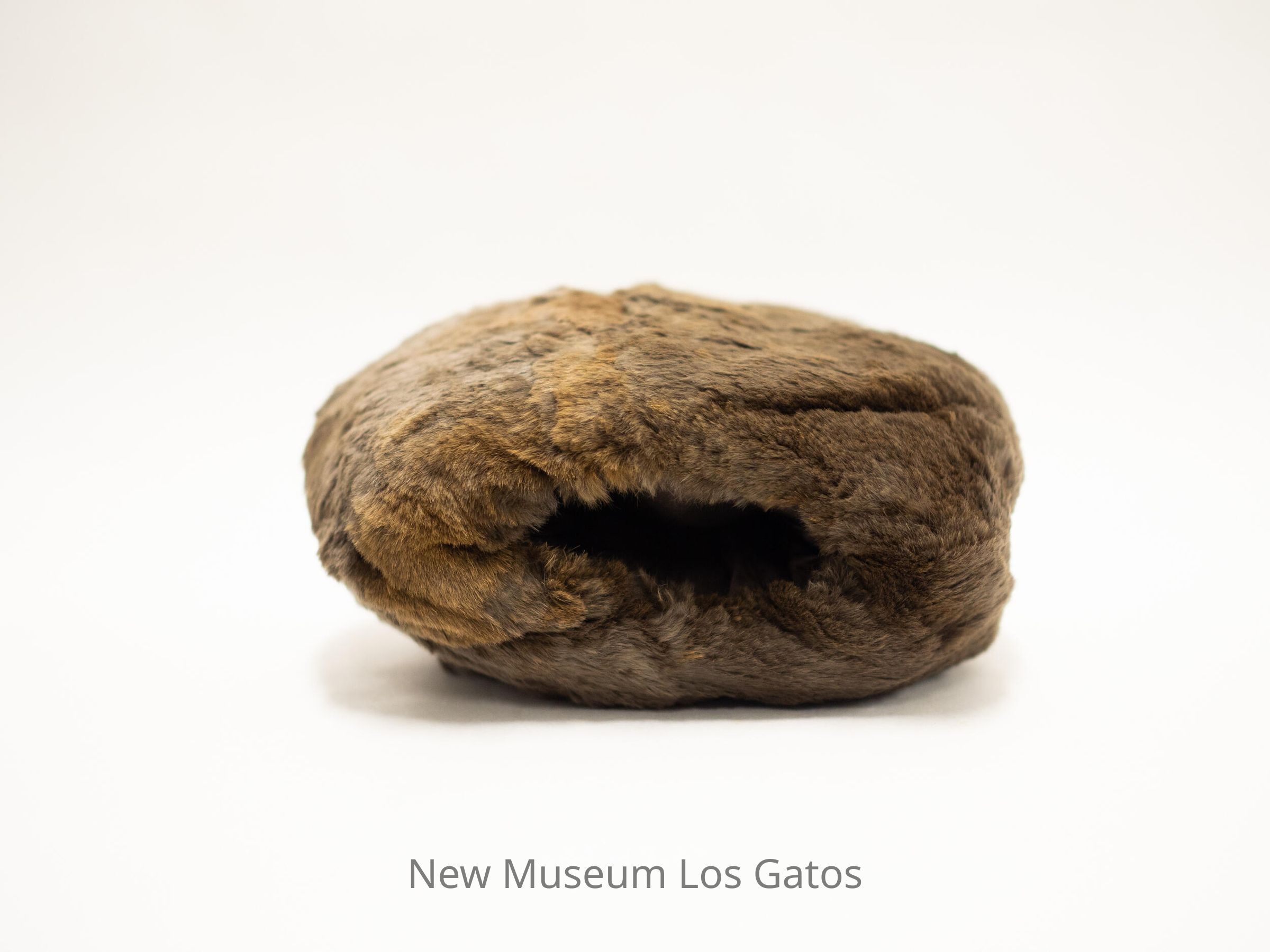 A small, brown fur hand muff with brown fabric lining on the inside.