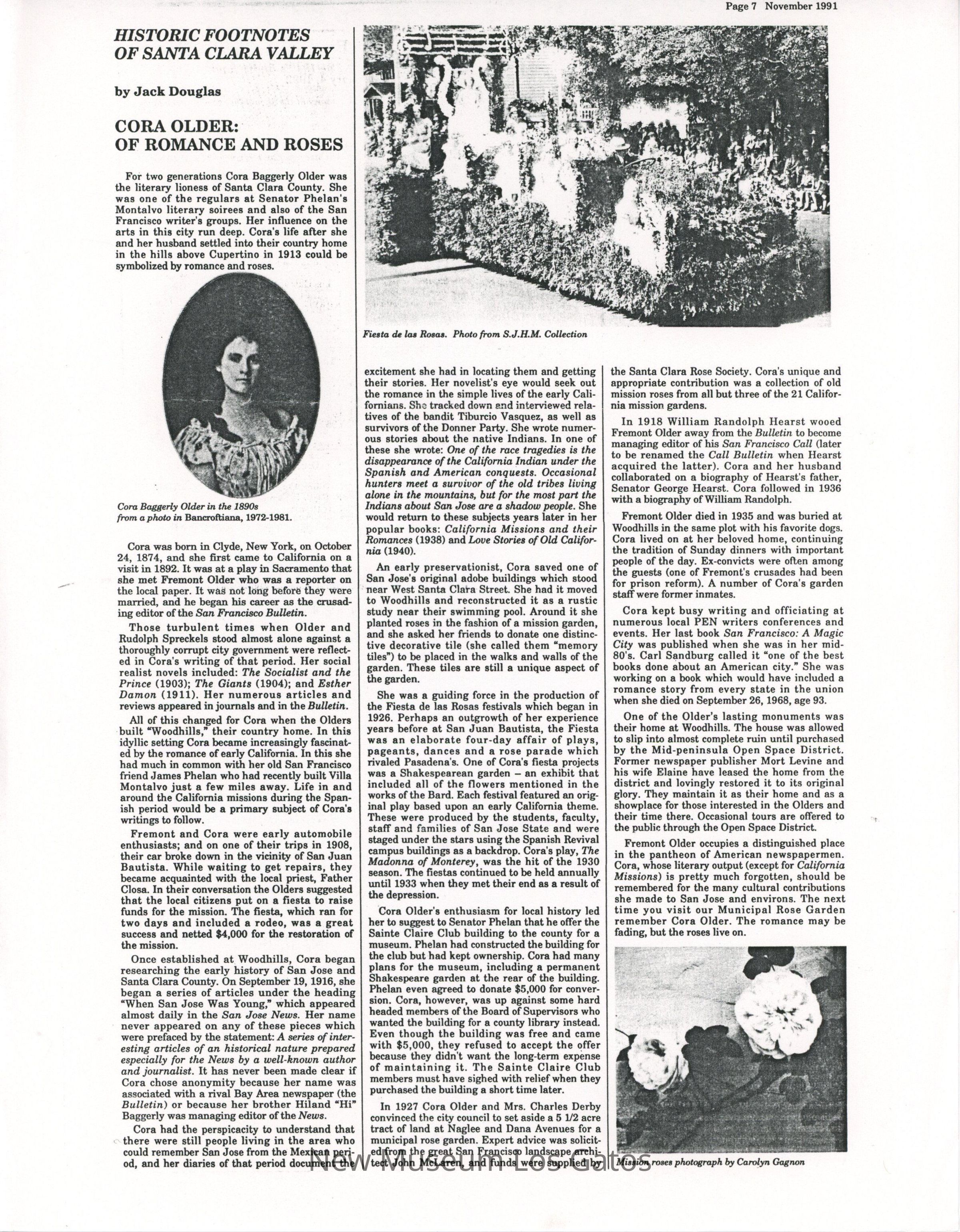 Two black and white photocopies of articles written in Historic Footnotes of Santa Clara Valley, by Jack Douglas.Collection
