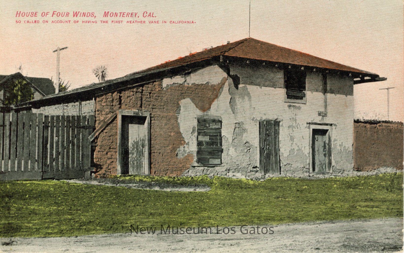 A colorized postcard featuring the House of Four Winds in Monterey, California, so called because it had the first weather vane in California. The postcard is unused.Subject Place