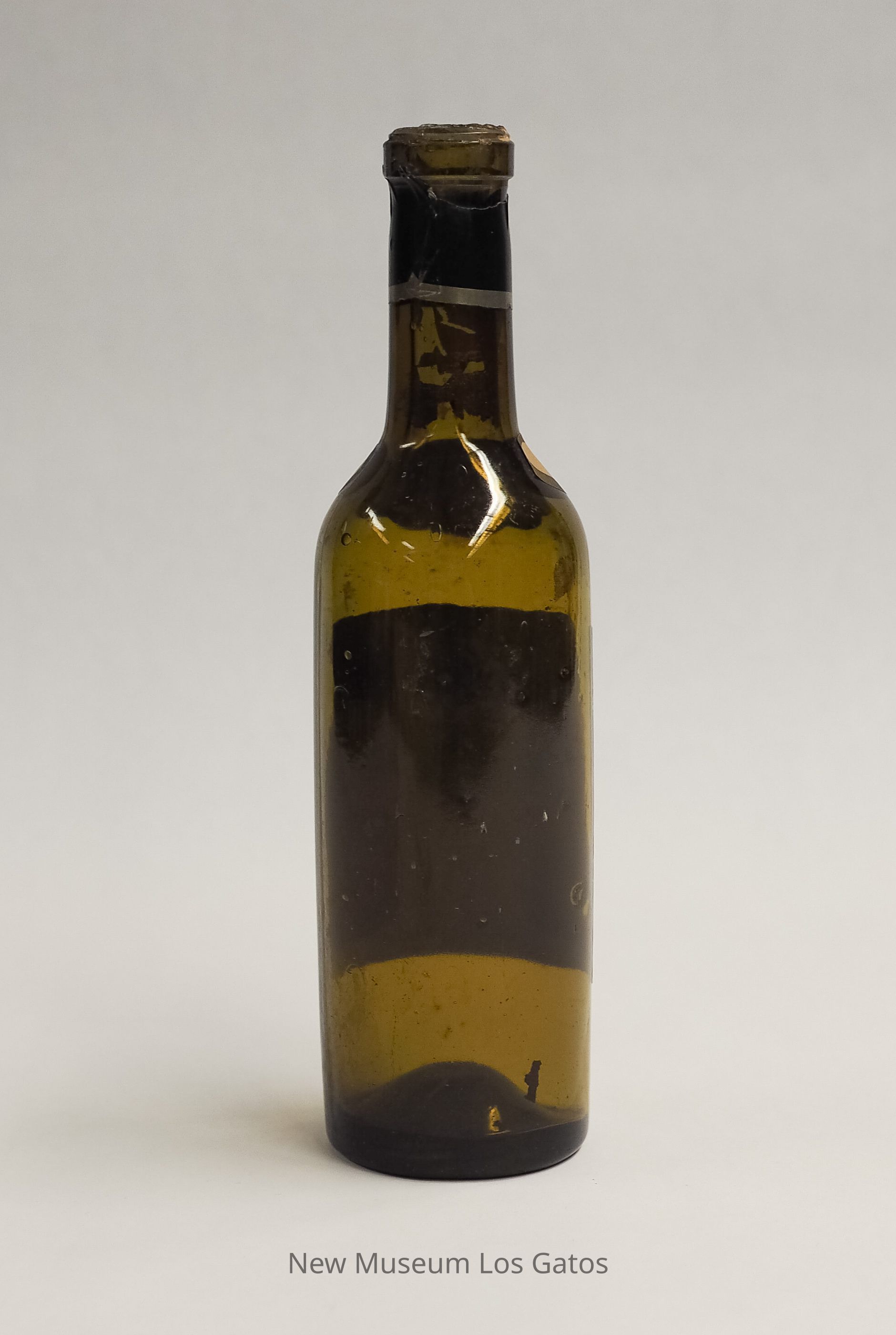 An empty olive-colored bottle of I. De Turk Cabernet with label.