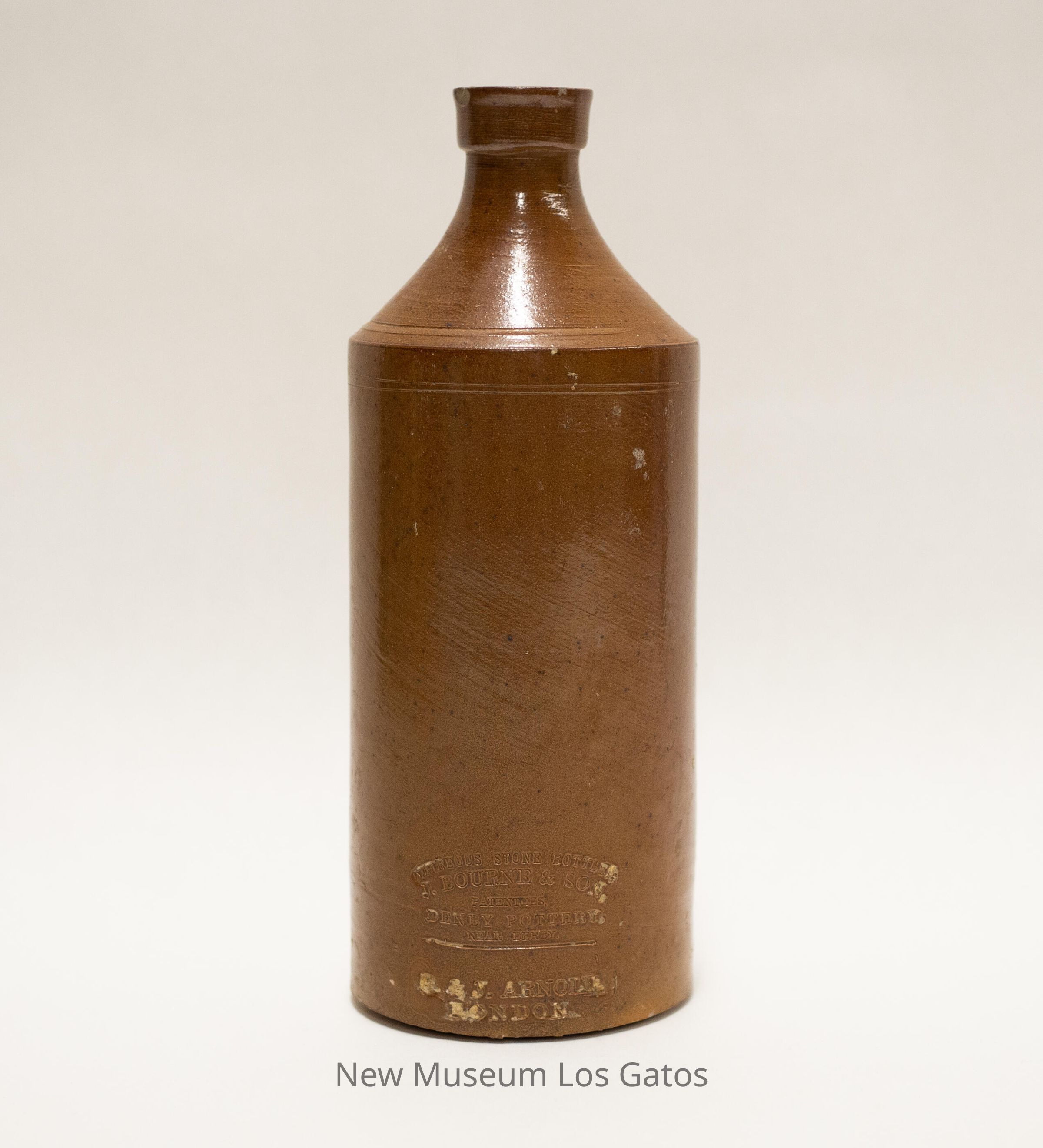 VITREOUS STONE BOTTLE / J. BOURNE & SON, / PATENTEES / DENBY POTTERY / NEAR DERBY P. & J. ARNOLD / LONDON