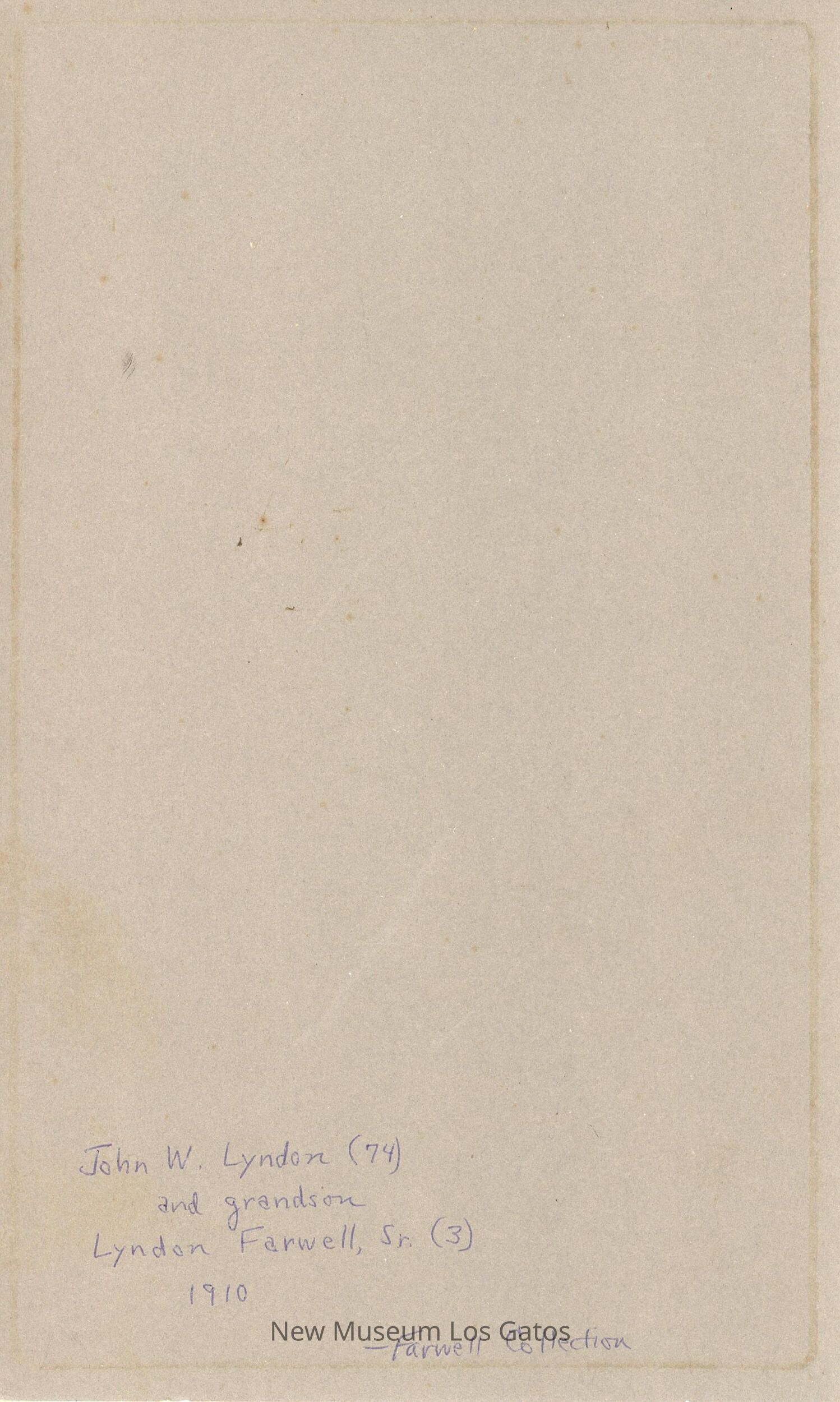 John W. Lyndon (74) and grandson Lyndon Farwell, Sr. (3) 1910 - Farwell CollectionLanguage