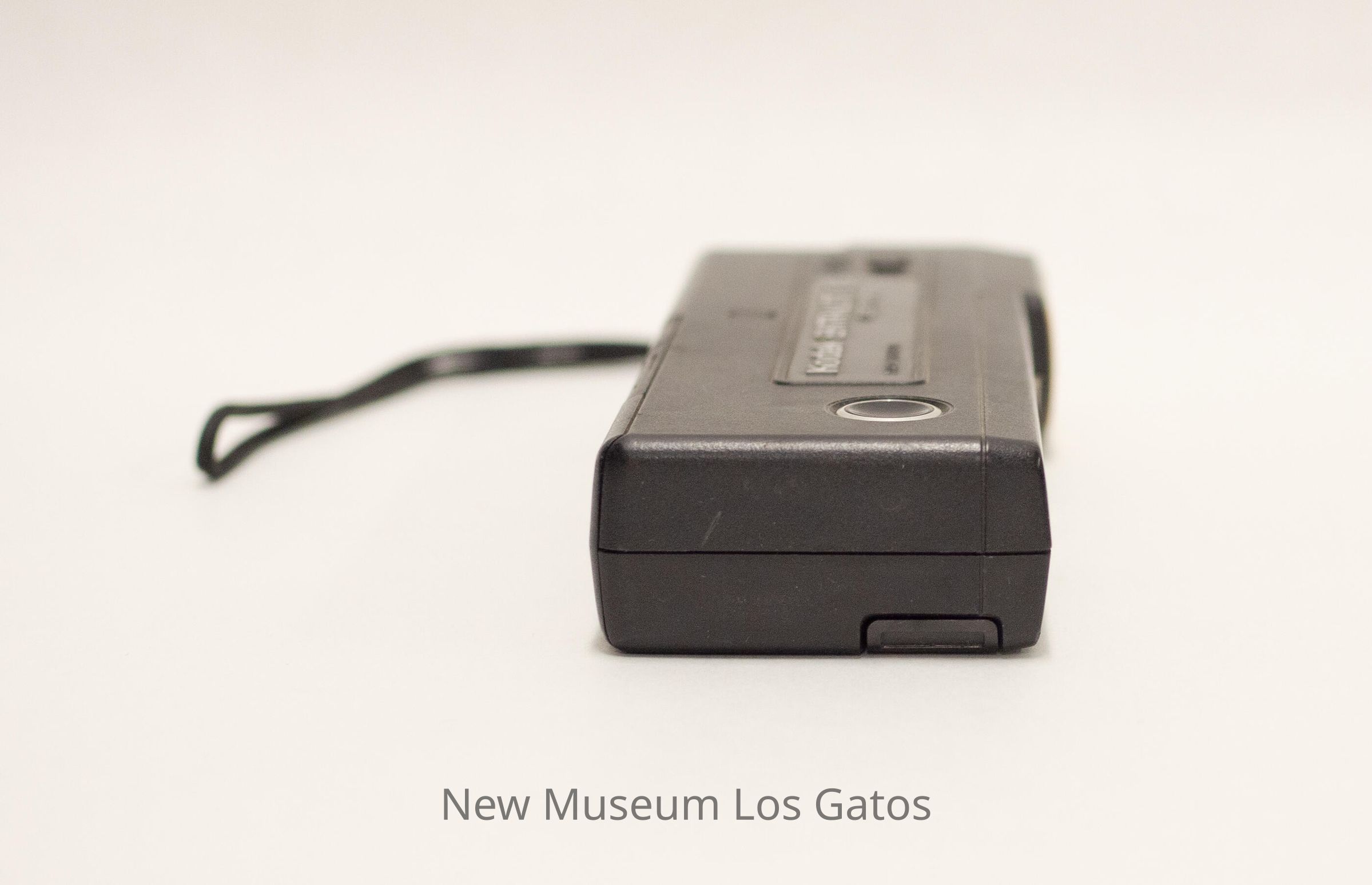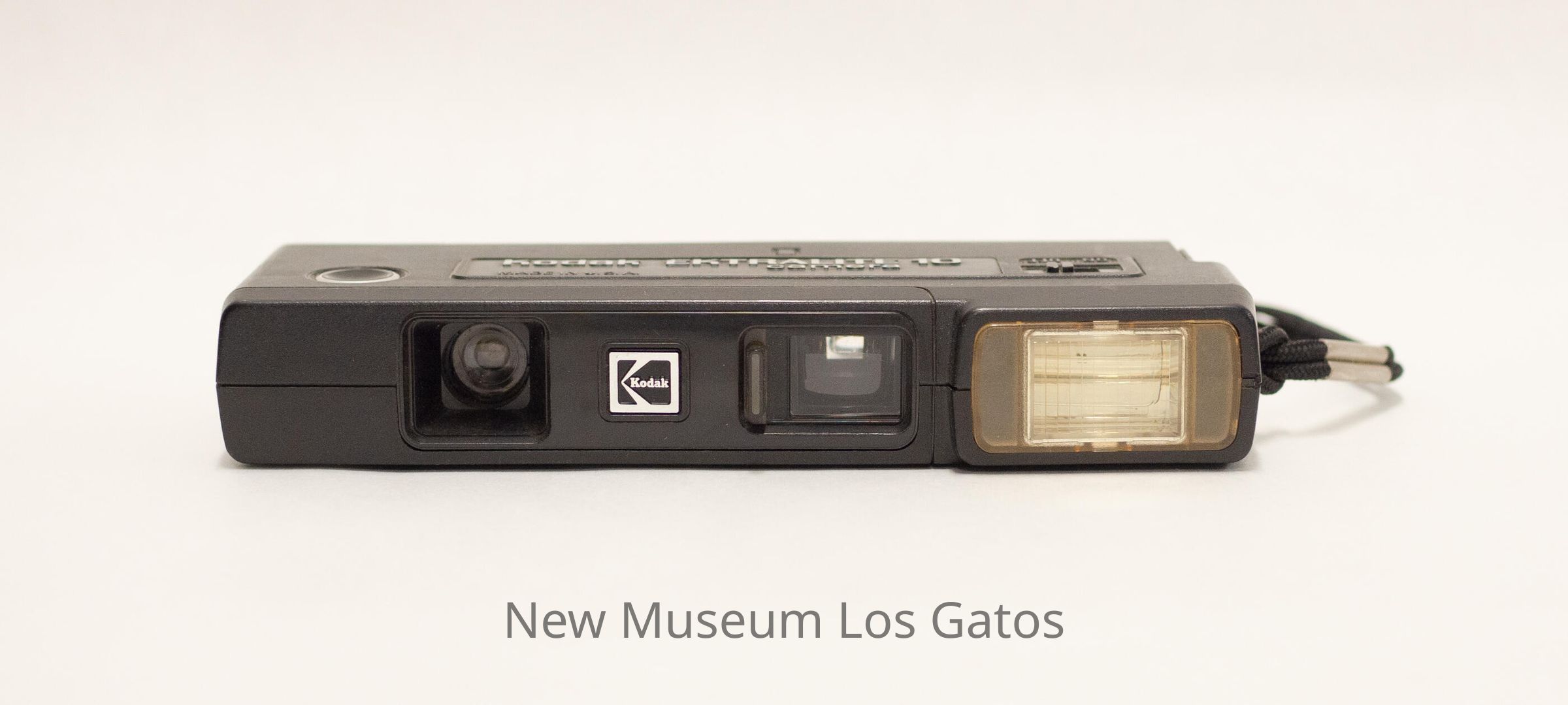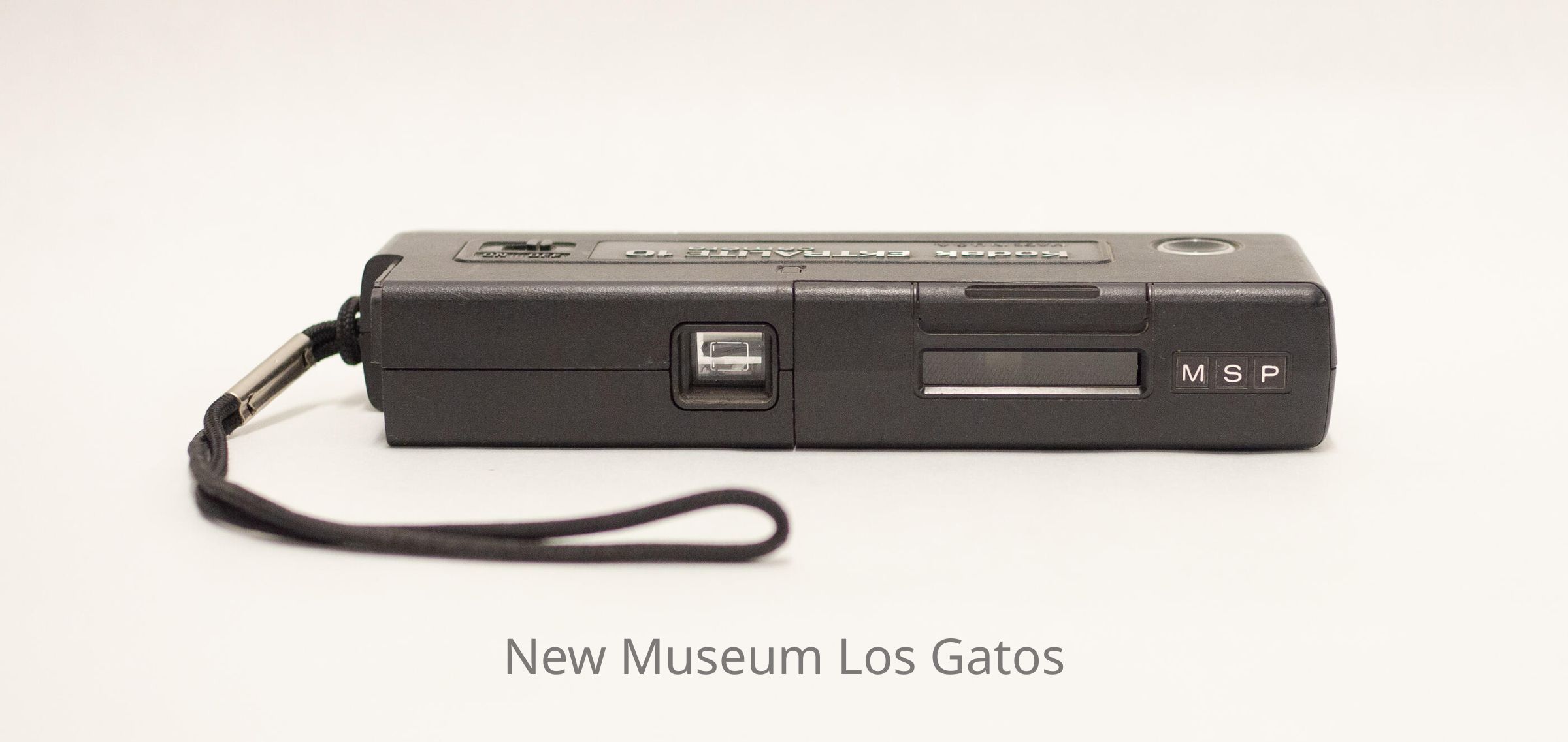 A thin, rectangular black plastic camera. On the front edge of the camera is the lens near the middle, which can be covered by a sliding plastic cover, with the flash bulb to the left of the lens and the Kodak logo and another lens to the right of the main lens. On the back edge of the camera is the viewfinder to the left side, and a compartment on the right side for holding the 110mm film that opens with a button. The trigger button is on the top of the camera, towards the right. There is a black fabric strap attached to the left side of the camera.Collection