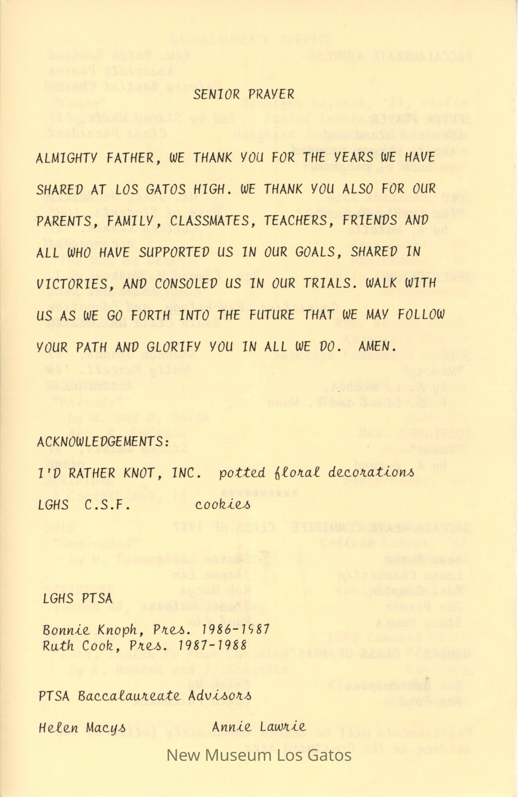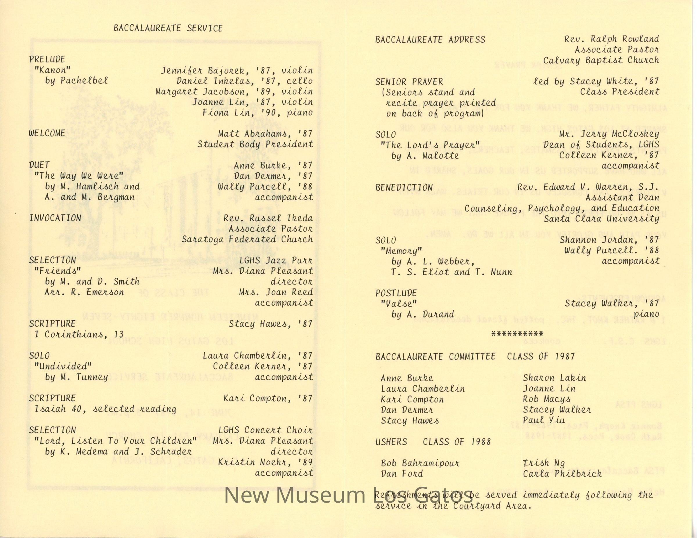 LGHS Class of 1987 Baccalaureate Service ProgramEntry/Object ID
