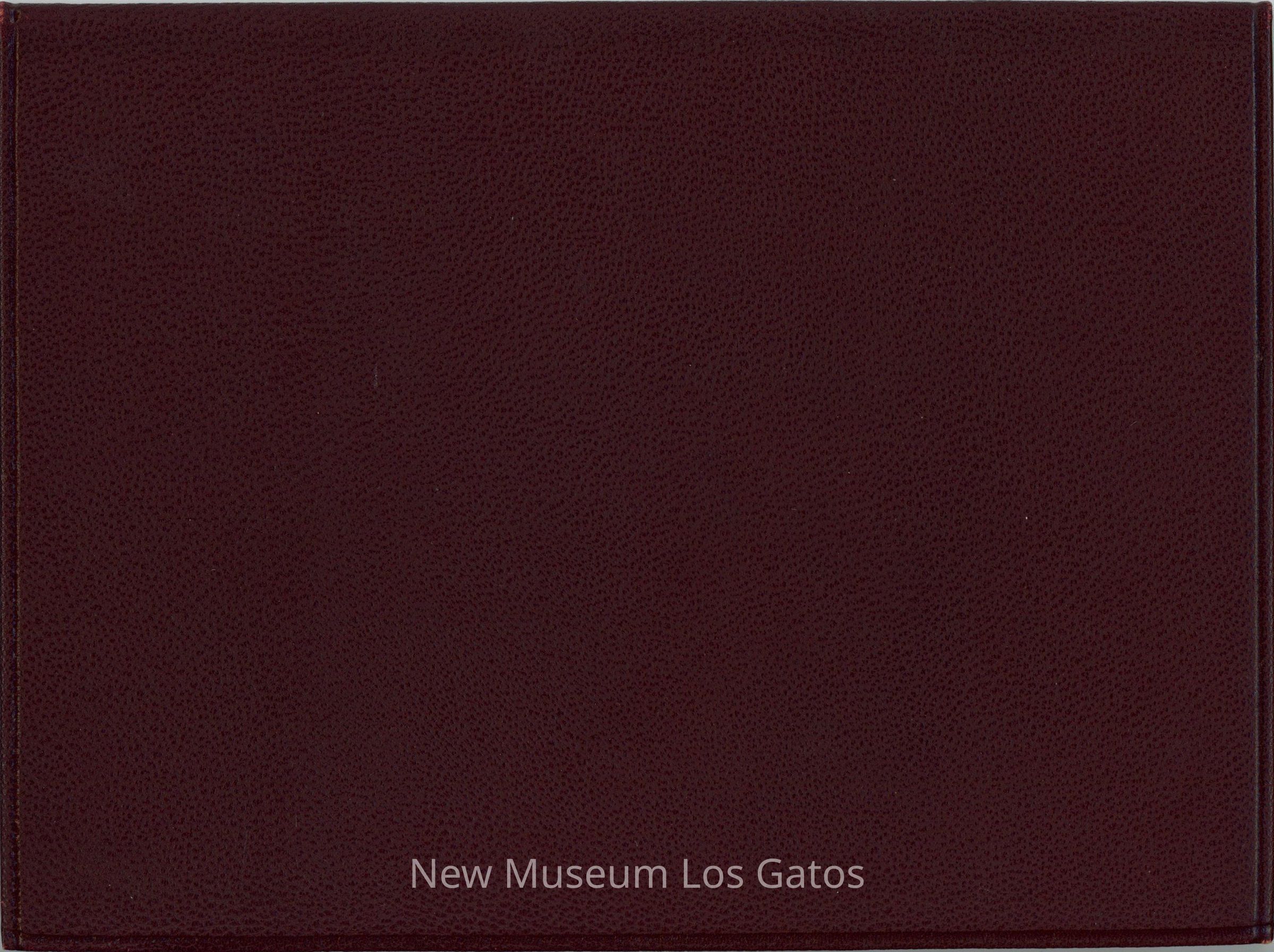 A diploma certificate for Victor Charles Booher from Los Gatos High School in 1931. The diploma case is bi-folded, and is burgundy/maroon leather on the outside and red cloth on the inside. The outside of the case has gold lettering.