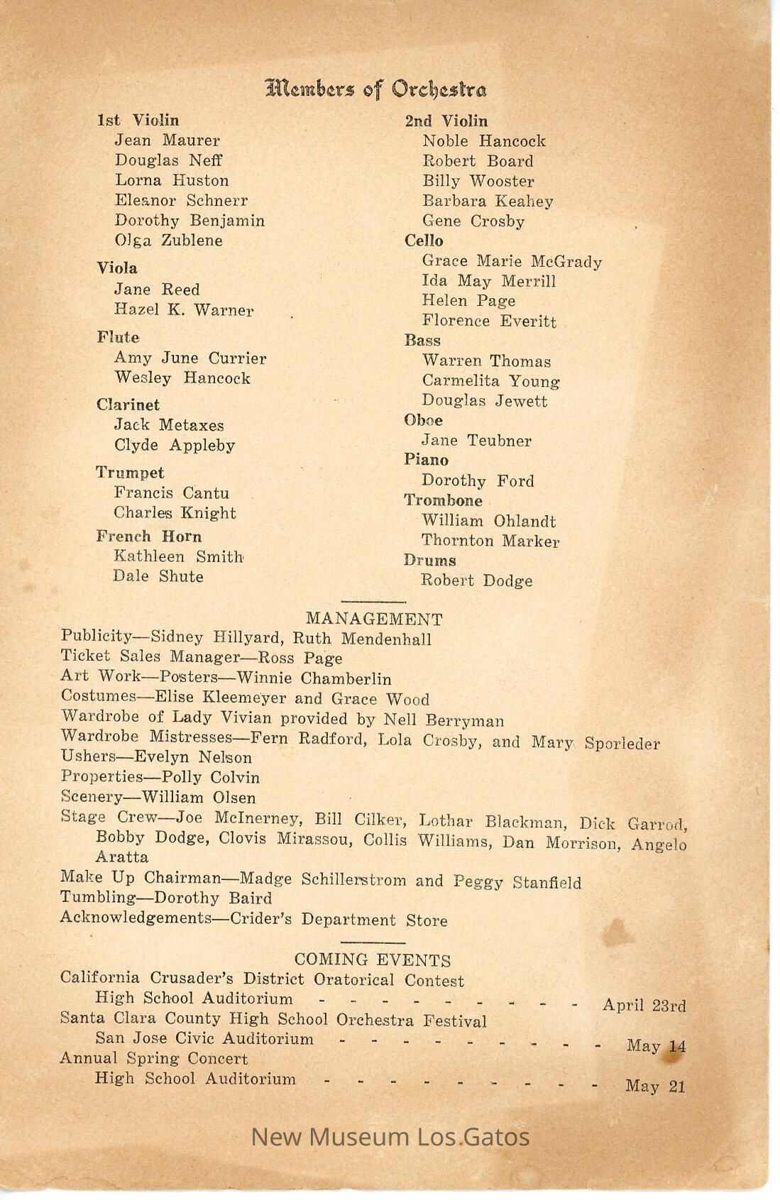 Program, ConcertNomenclature Primary Object Term