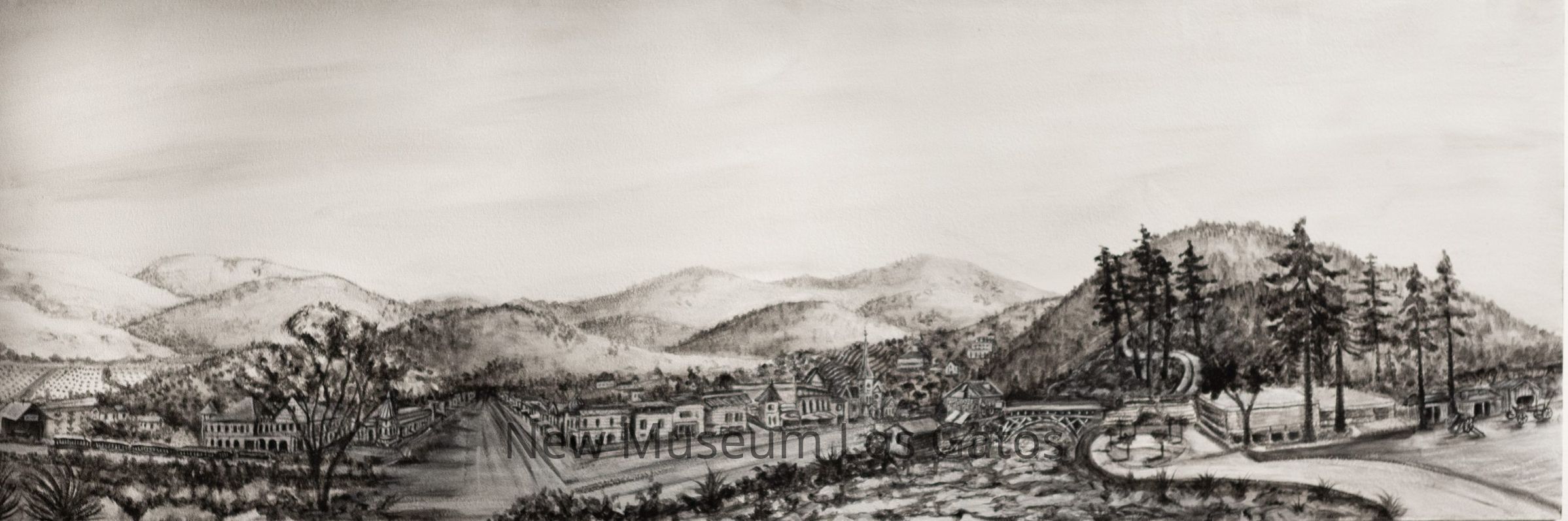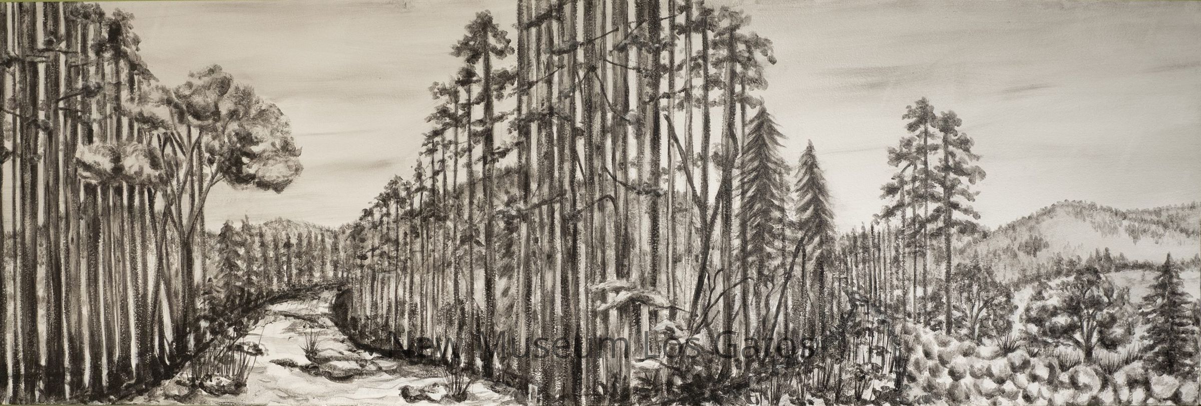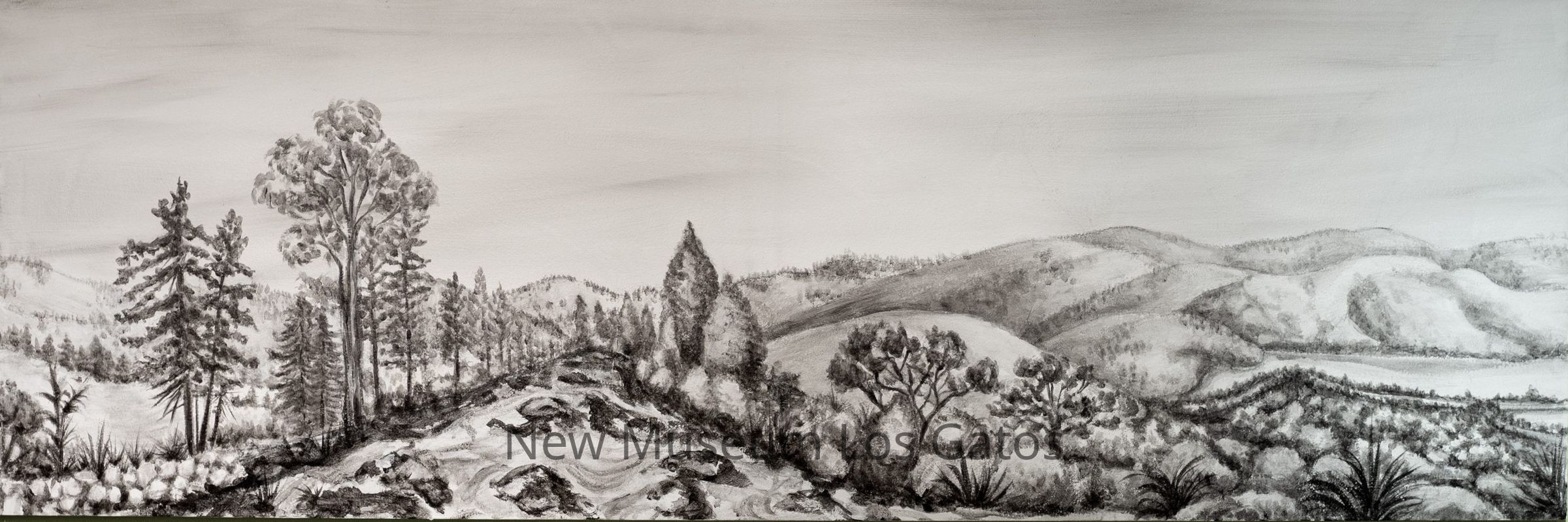 A black and white polyptych landscape painting of Los Gatos.Type of Painting