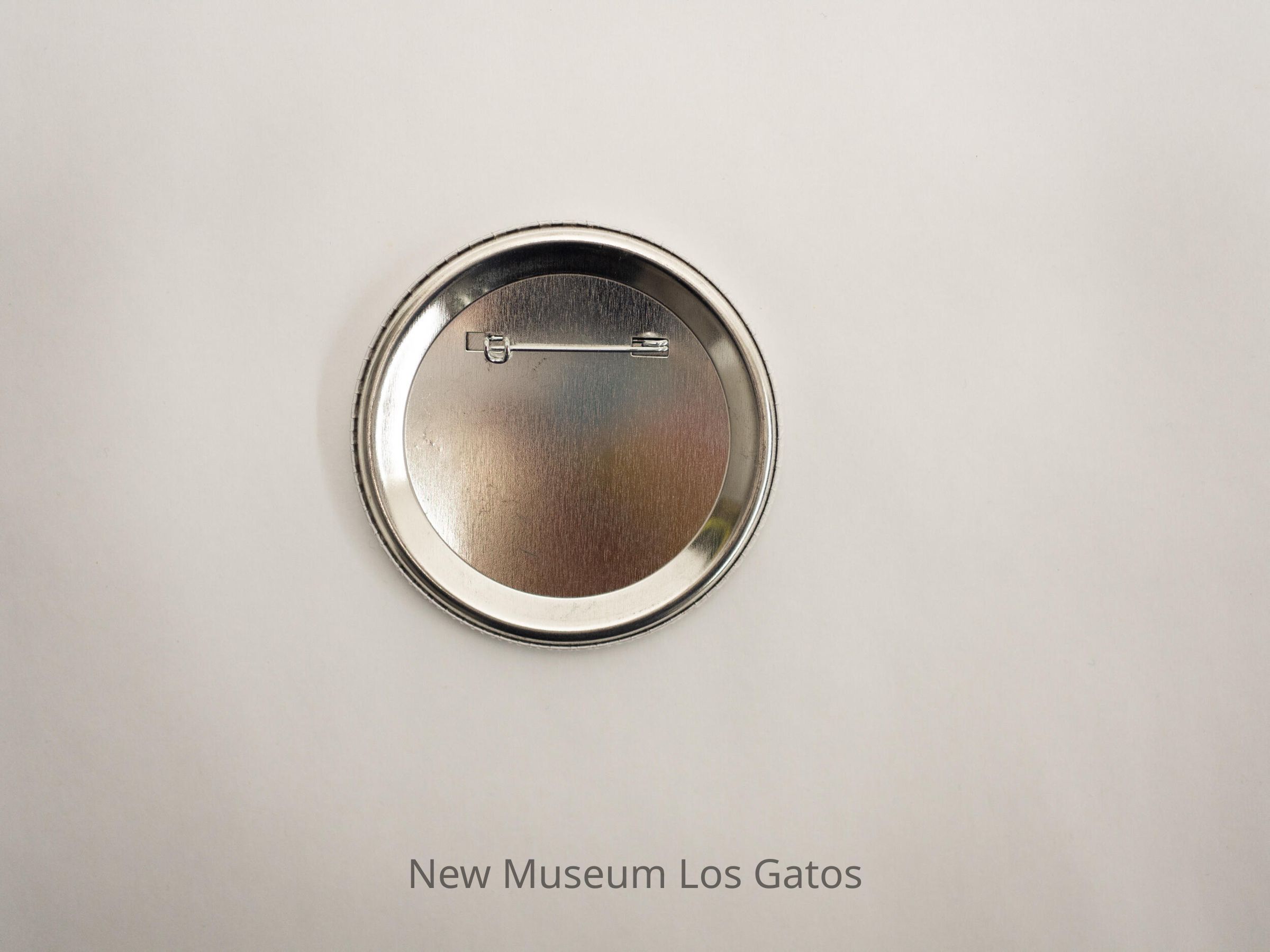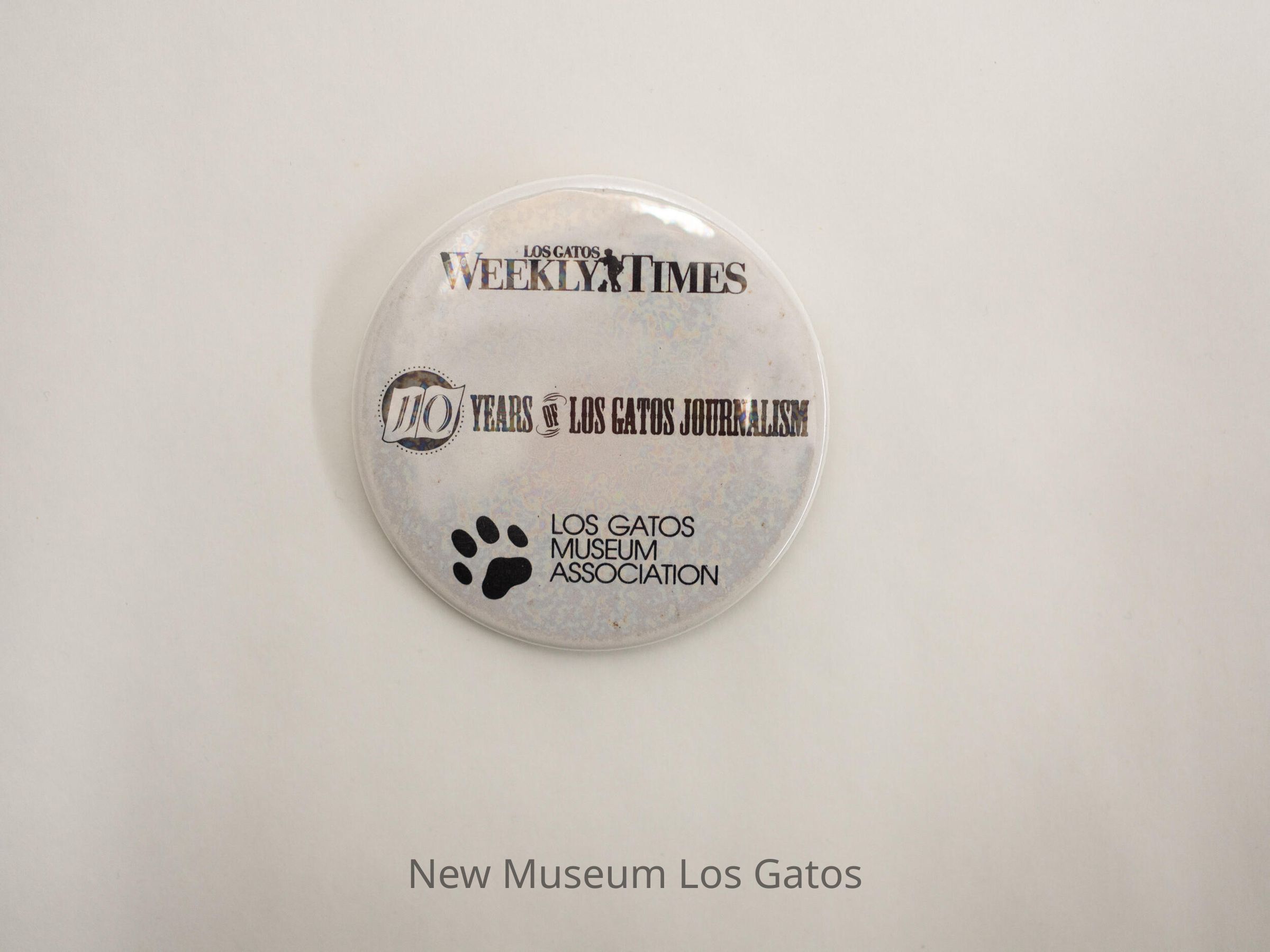White, sparkly button celebrating 110 years of Los Gatos Journalism.Collection