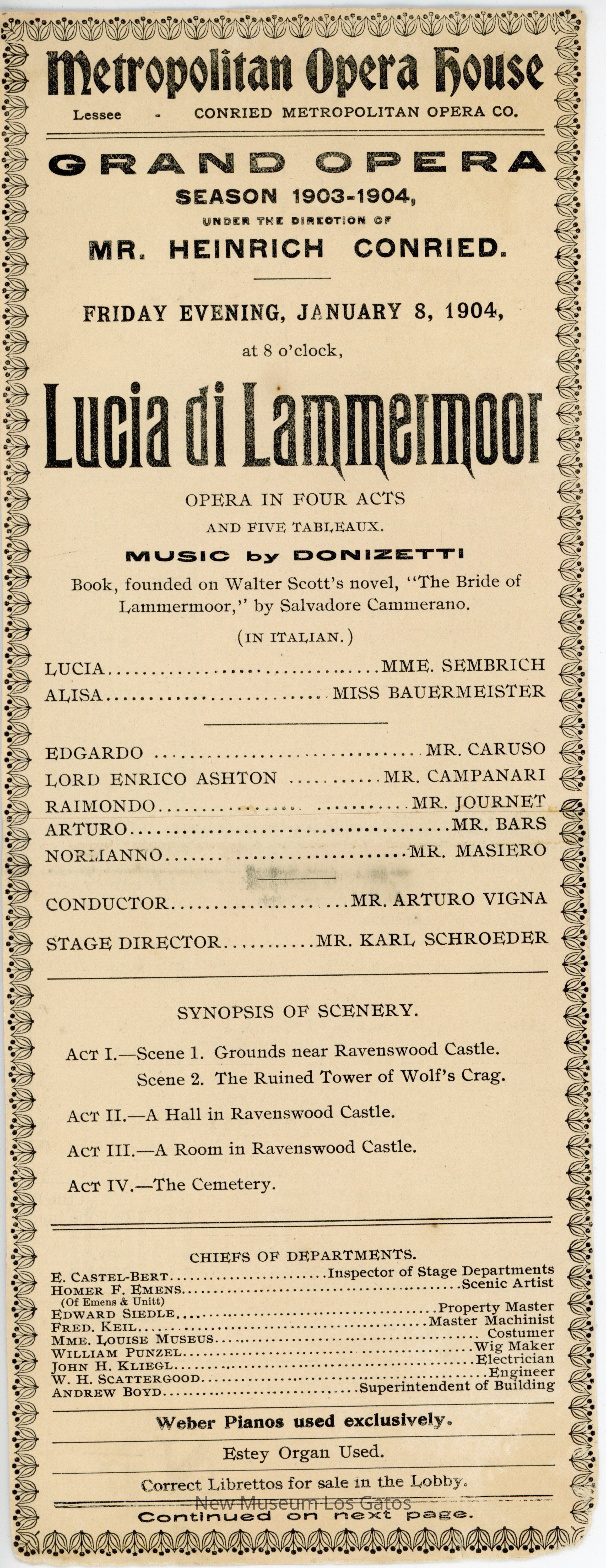 A program for the opera production, Lucia di Lammermoor, 1904.Collection