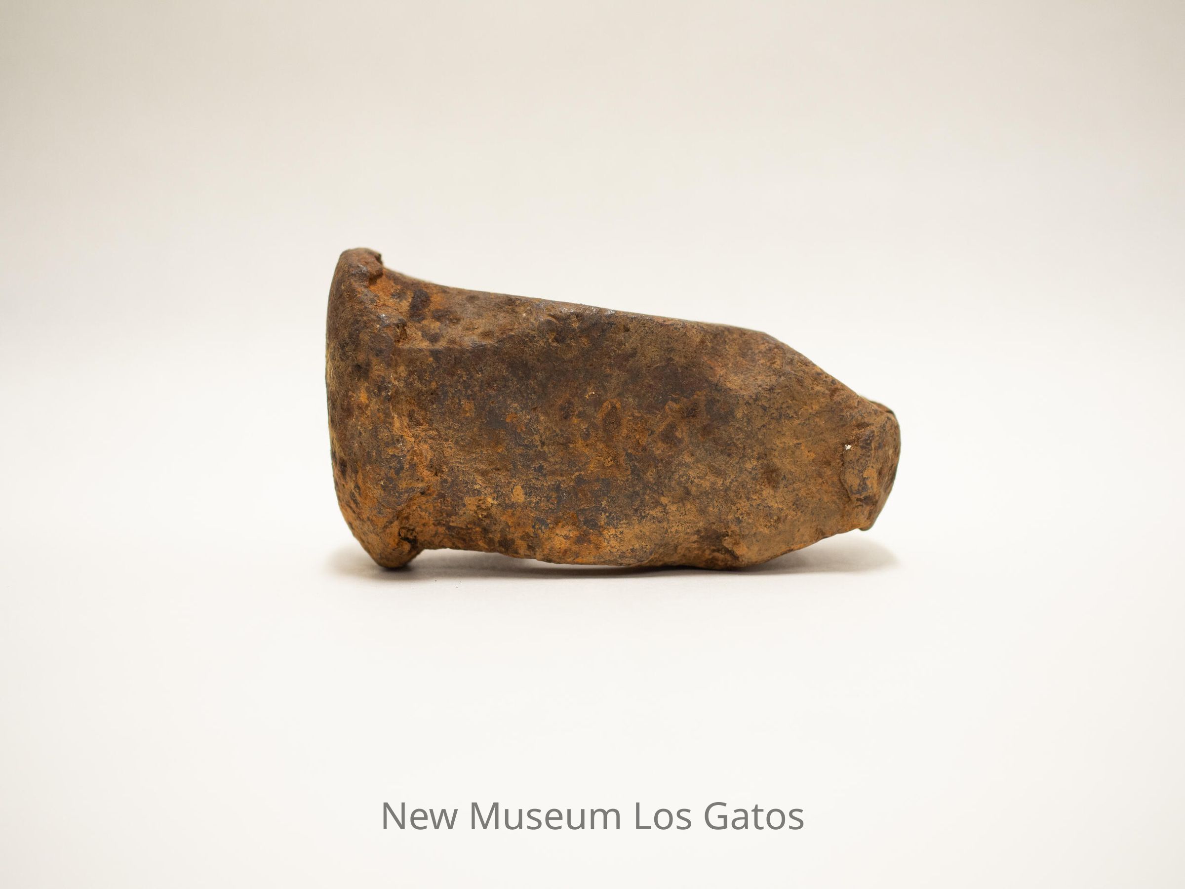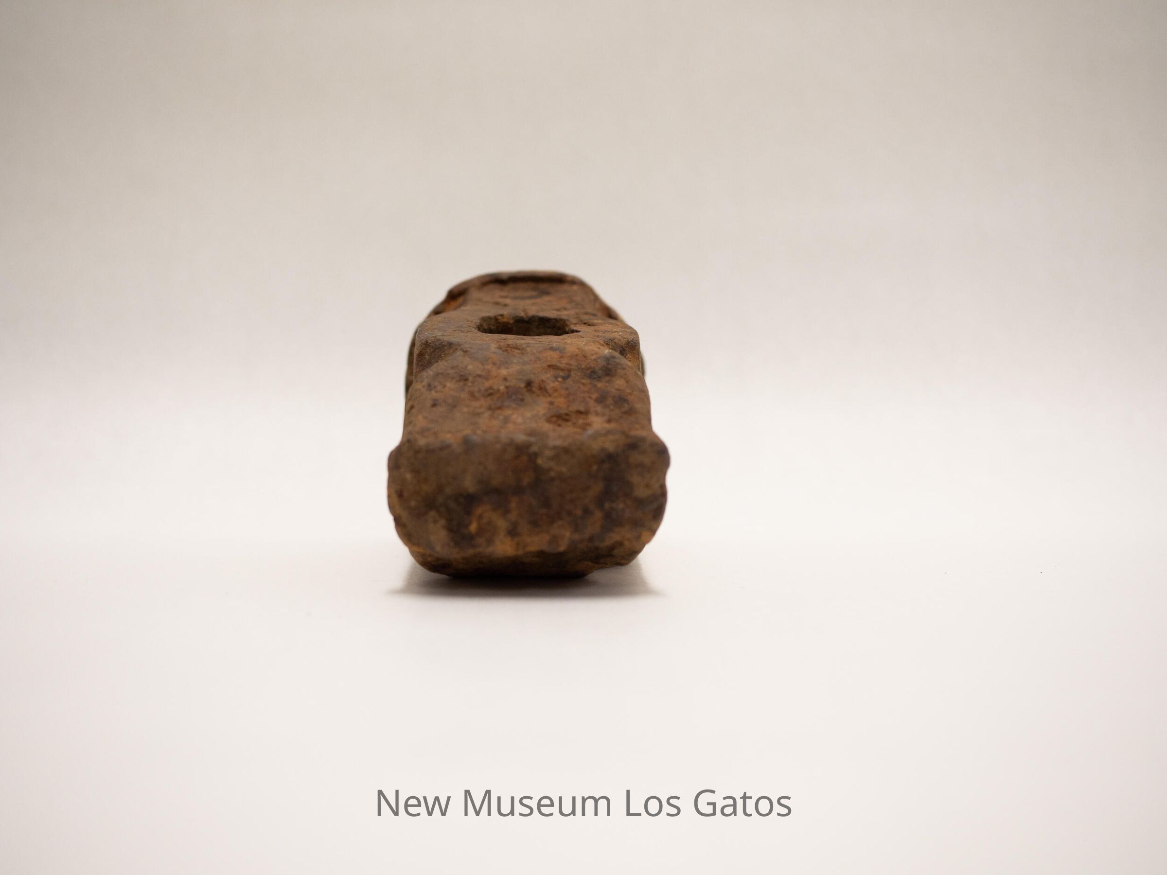 Heavy, metal head of a maul (a type of large hammer). There is a hole through the middle, where the handle, or shank, once was. Previous documentation indicates that there is a 17.5" steel shank associated with this object, but that portion appears to be missing.Collection