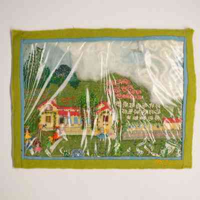 The inspiration to do this needle work came from the Hour of Power program and to keep going stitch after stitch.Language