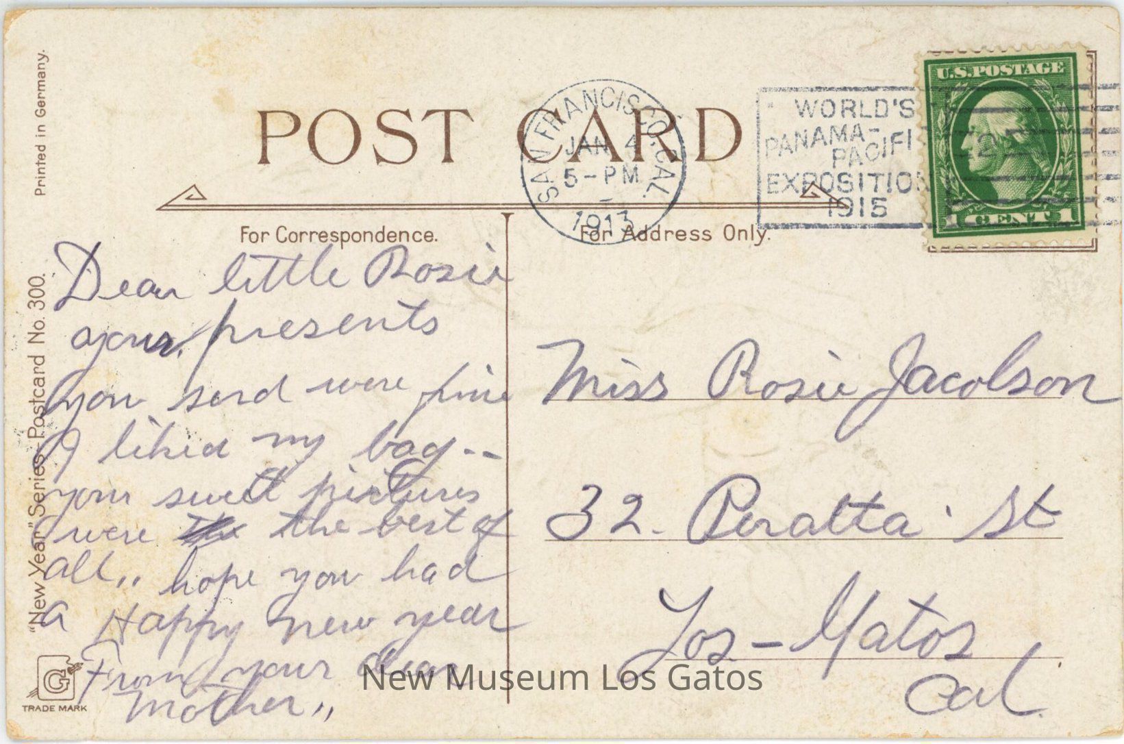 January 4, 1913, 5:00PMPostmark Place