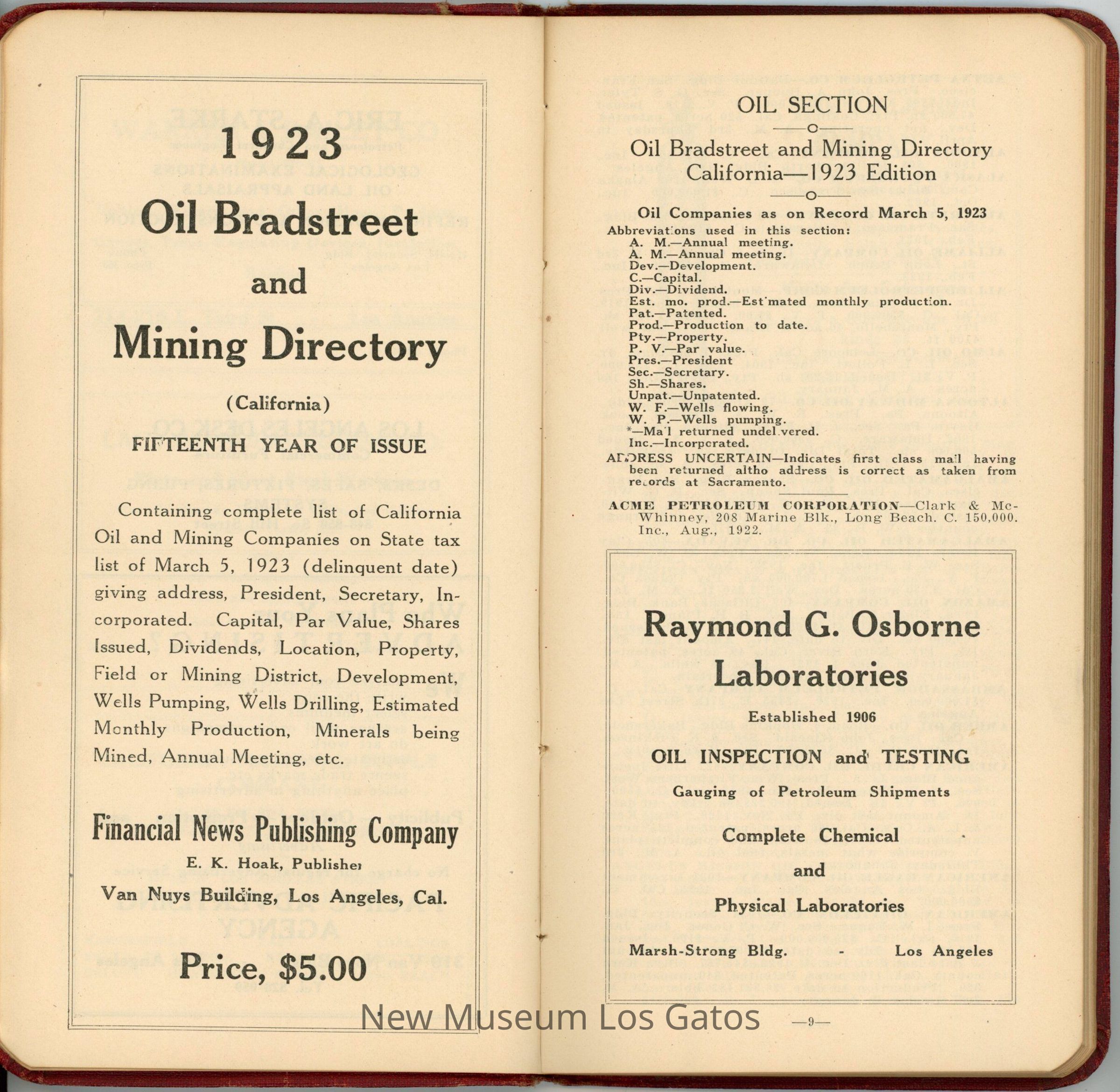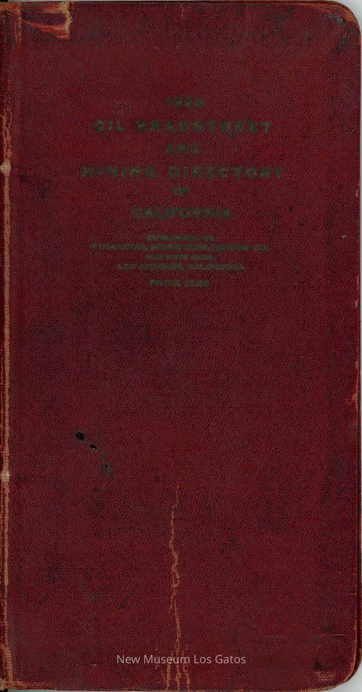 A red, leather-bound directory containing a complete list of oil and mining companies in California, as well as selected information about each company.