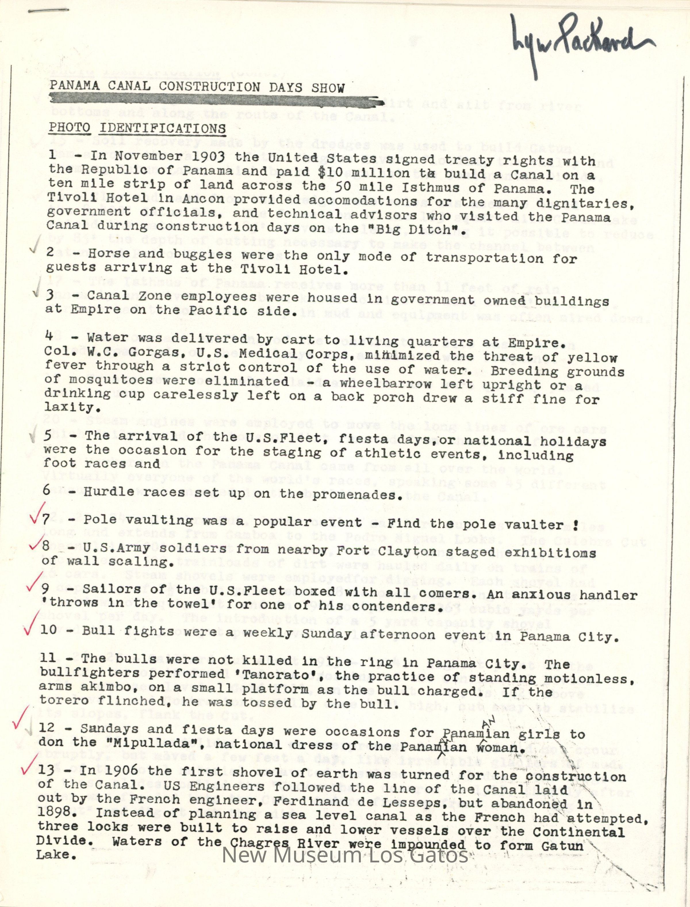 Panama Canal Construction Days ShowEntry/Object ID