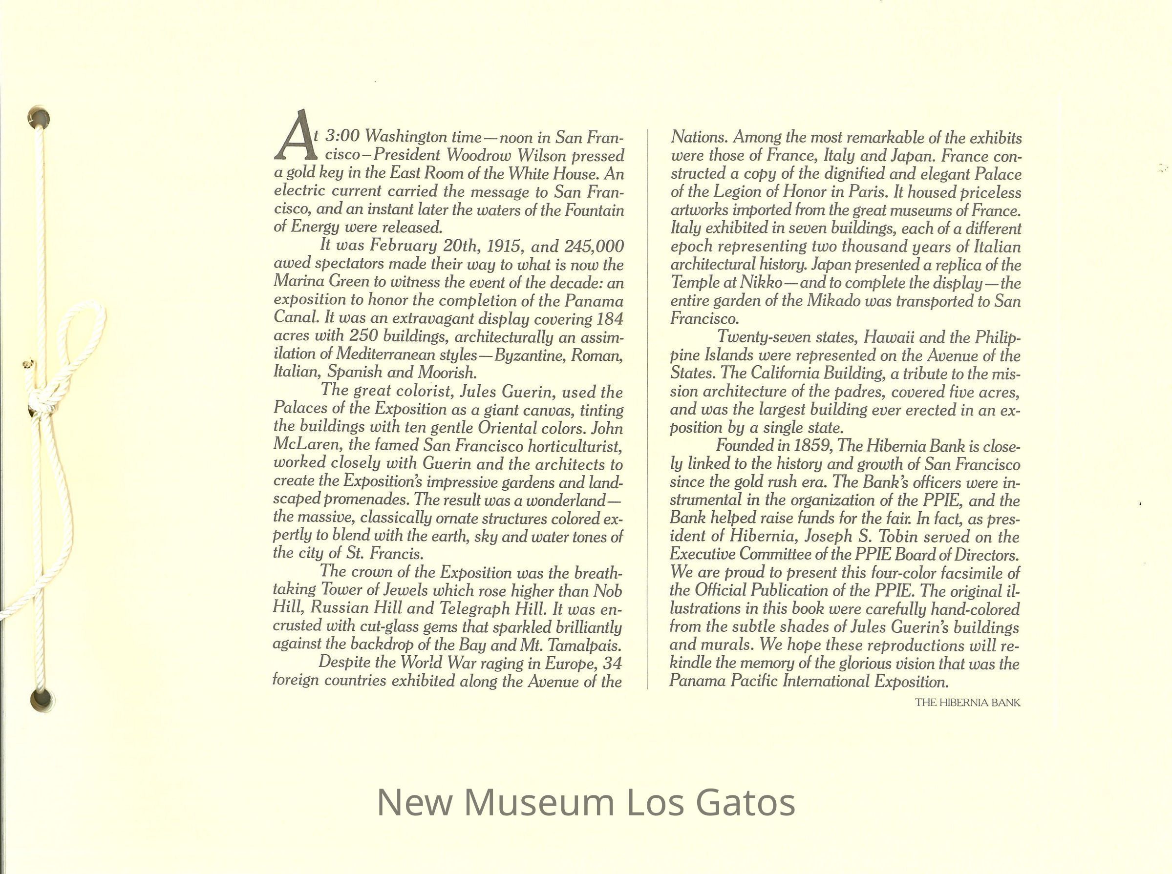 A book containing hand-colored plates of the Panama Pacific International Exhibition in San Francisco in 1915.Collection
