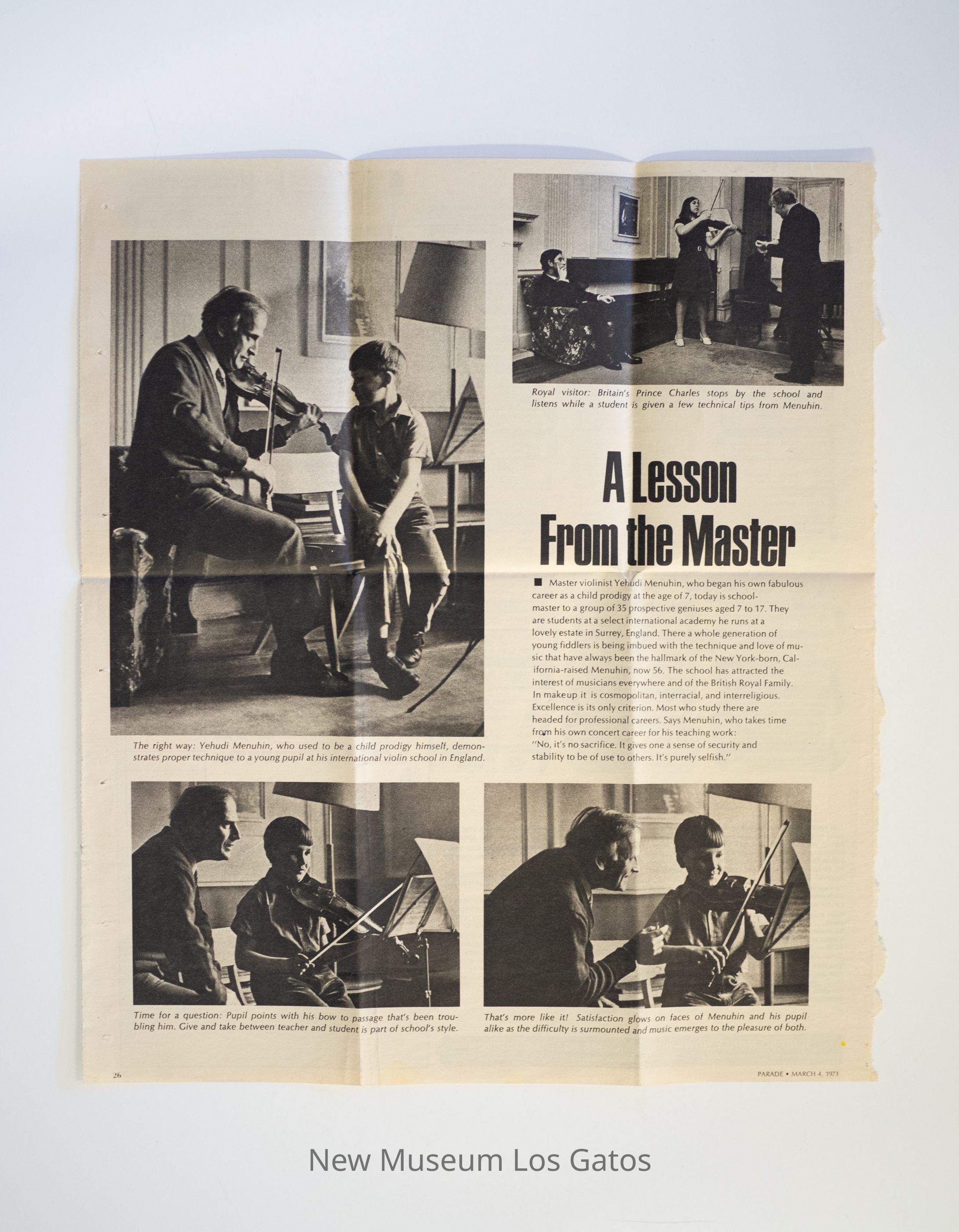 A clipping about Yehudi Menuhin's music academy in Surrey, England.Collection