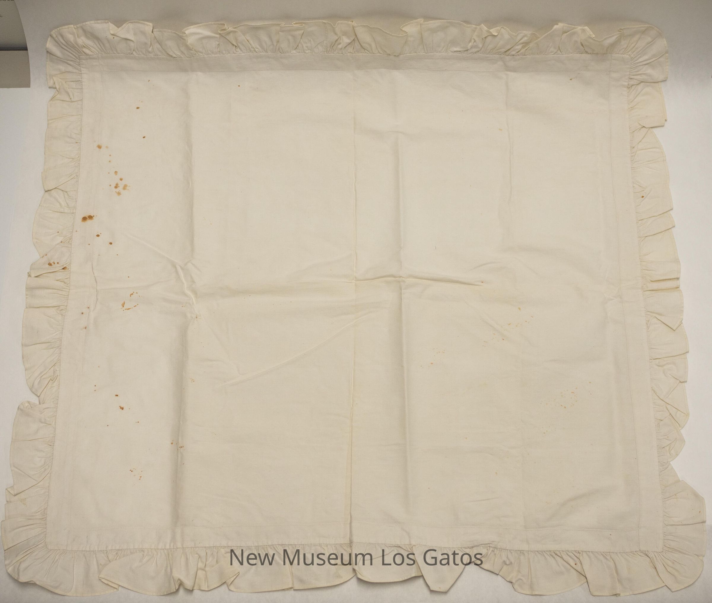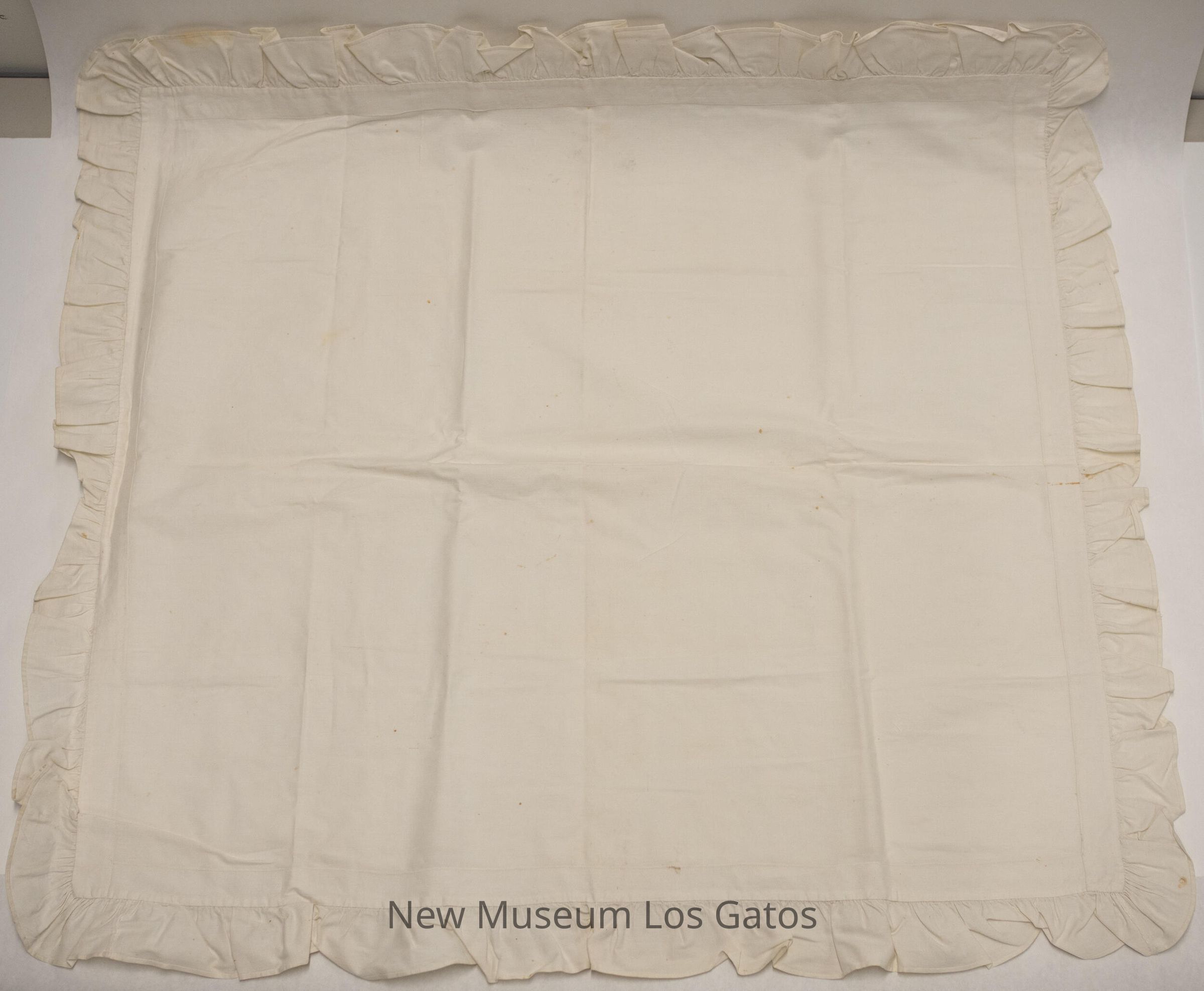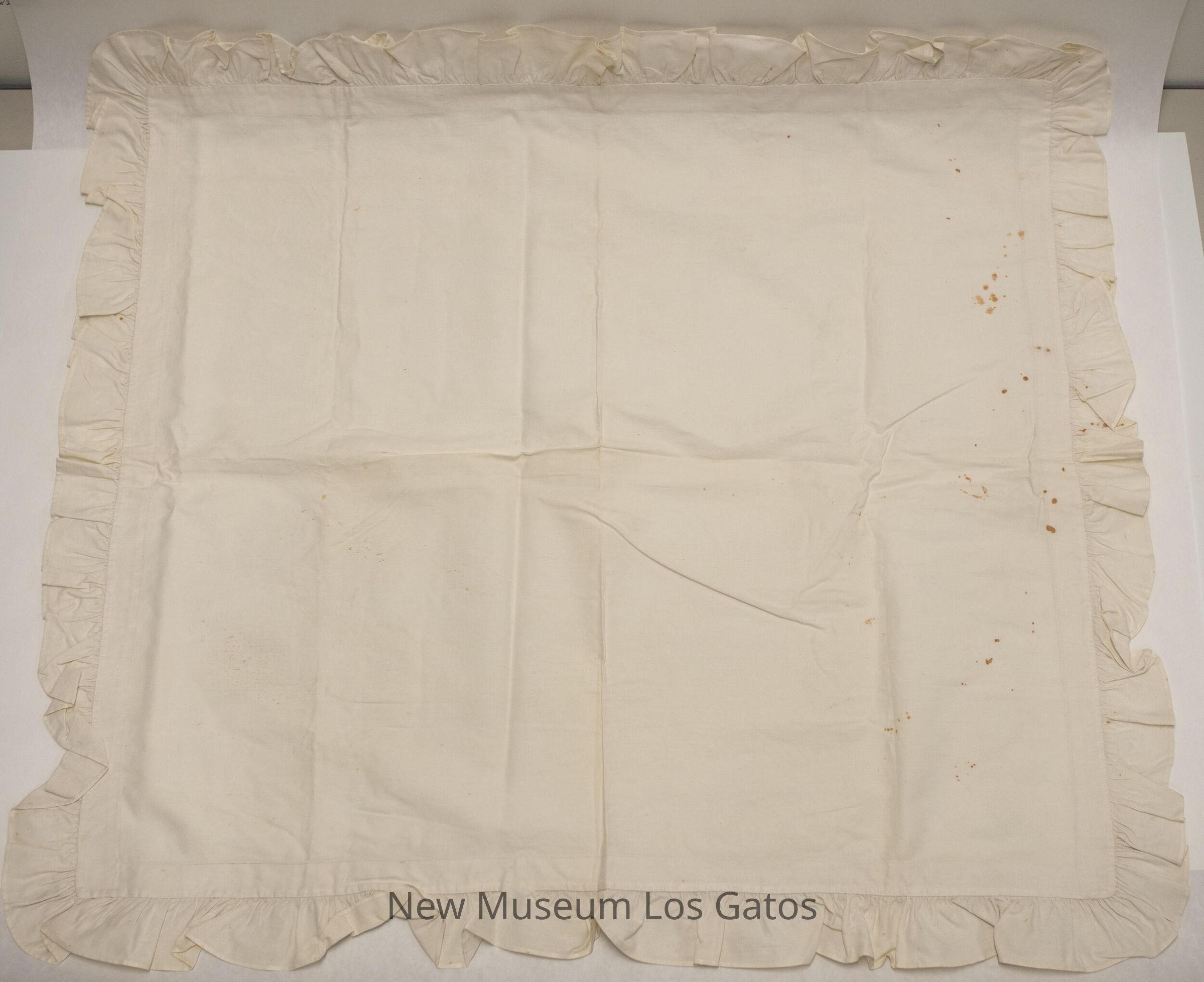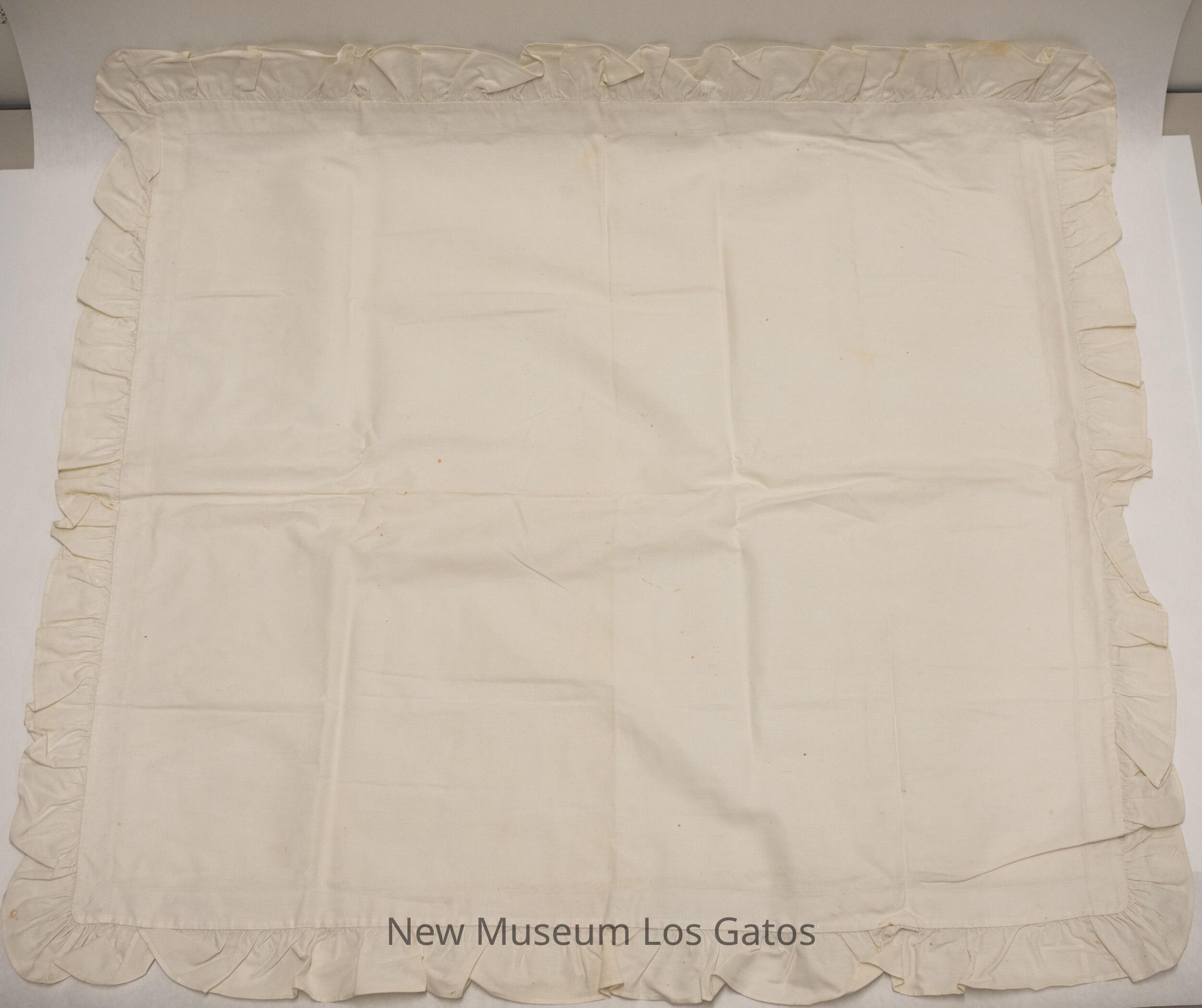Two matching plain white pillow shams, with ruffled borders.Collection
