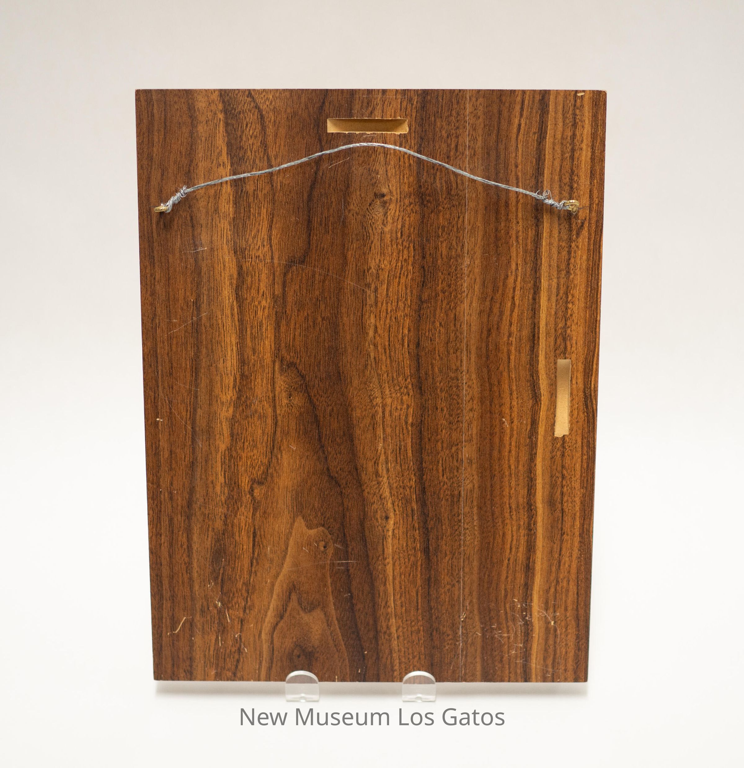 A rectangular piece of wood with shiny brass plates screwed into the wood. At the top is a large, rectangular piece of brass with the title of the plaque engraved on it. Below that are two columns of six smaller brass pieces, with all six in the leftmost column engraved, and three in the rightmost column engraved. There are two brass hooks screwed into the back of the wood, with a wire between them, for hanging the plaque.Collection