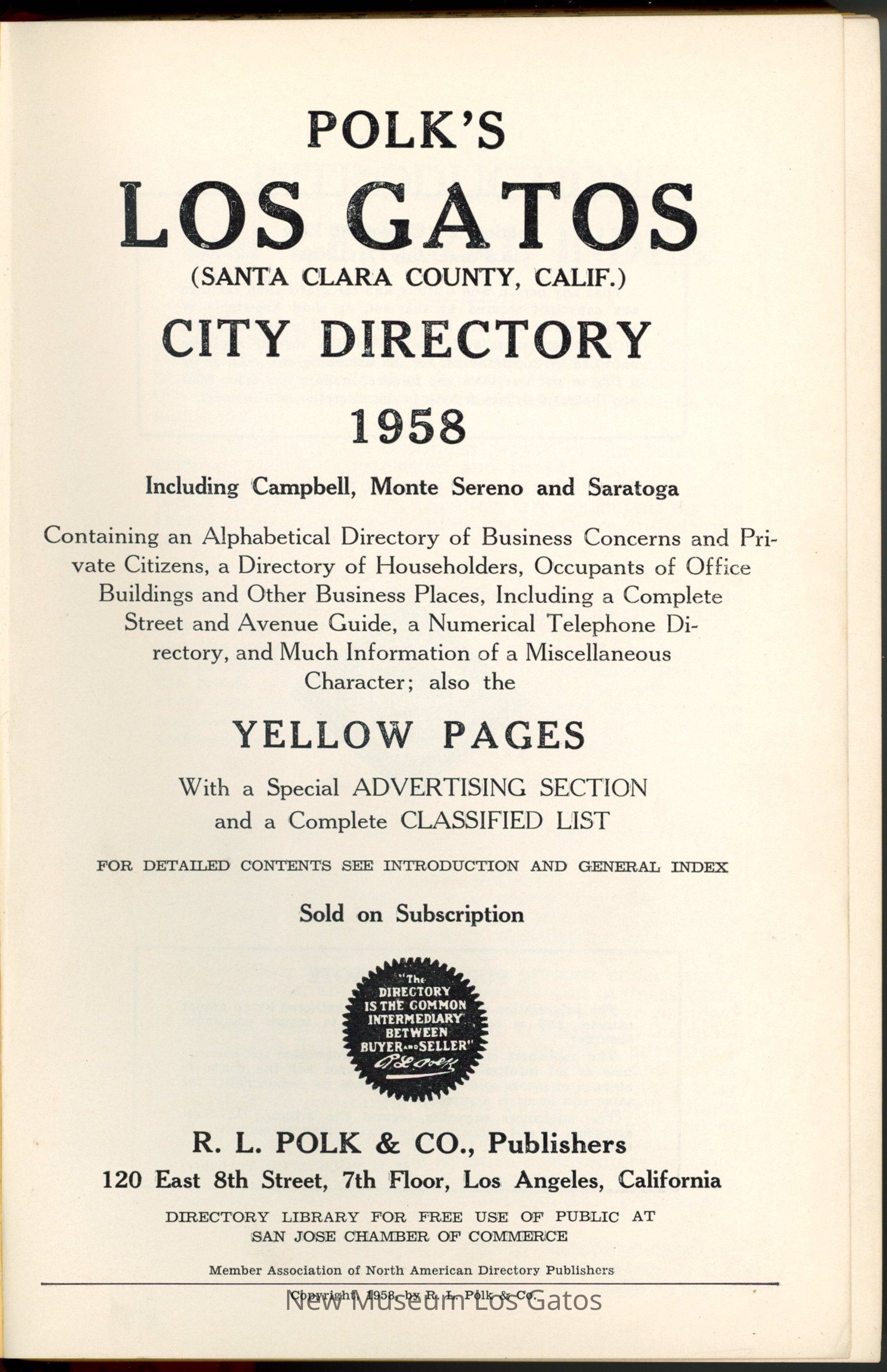 Polk's Los Gatos City Directory, 1958Entry/Object ID