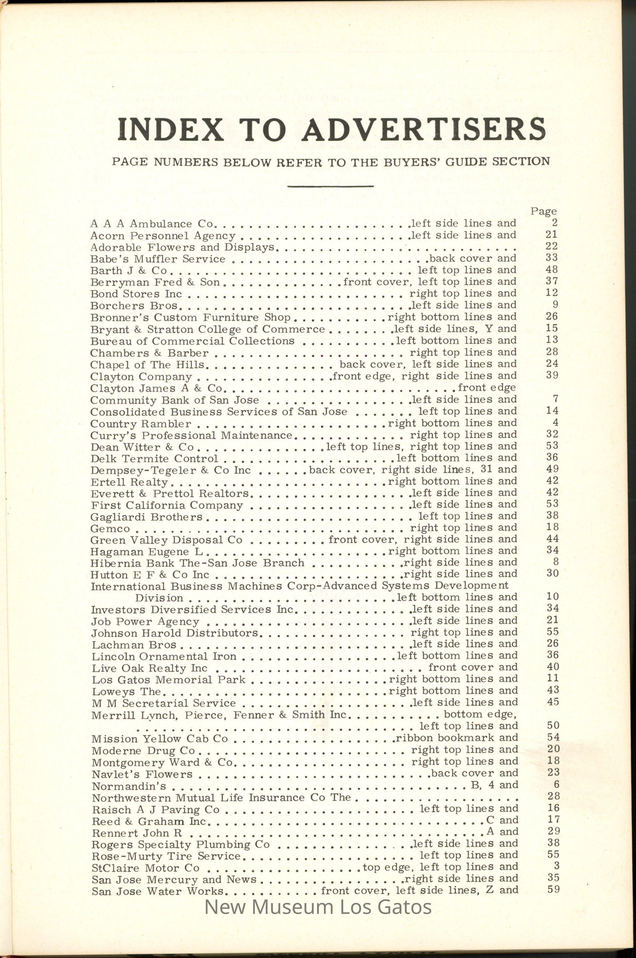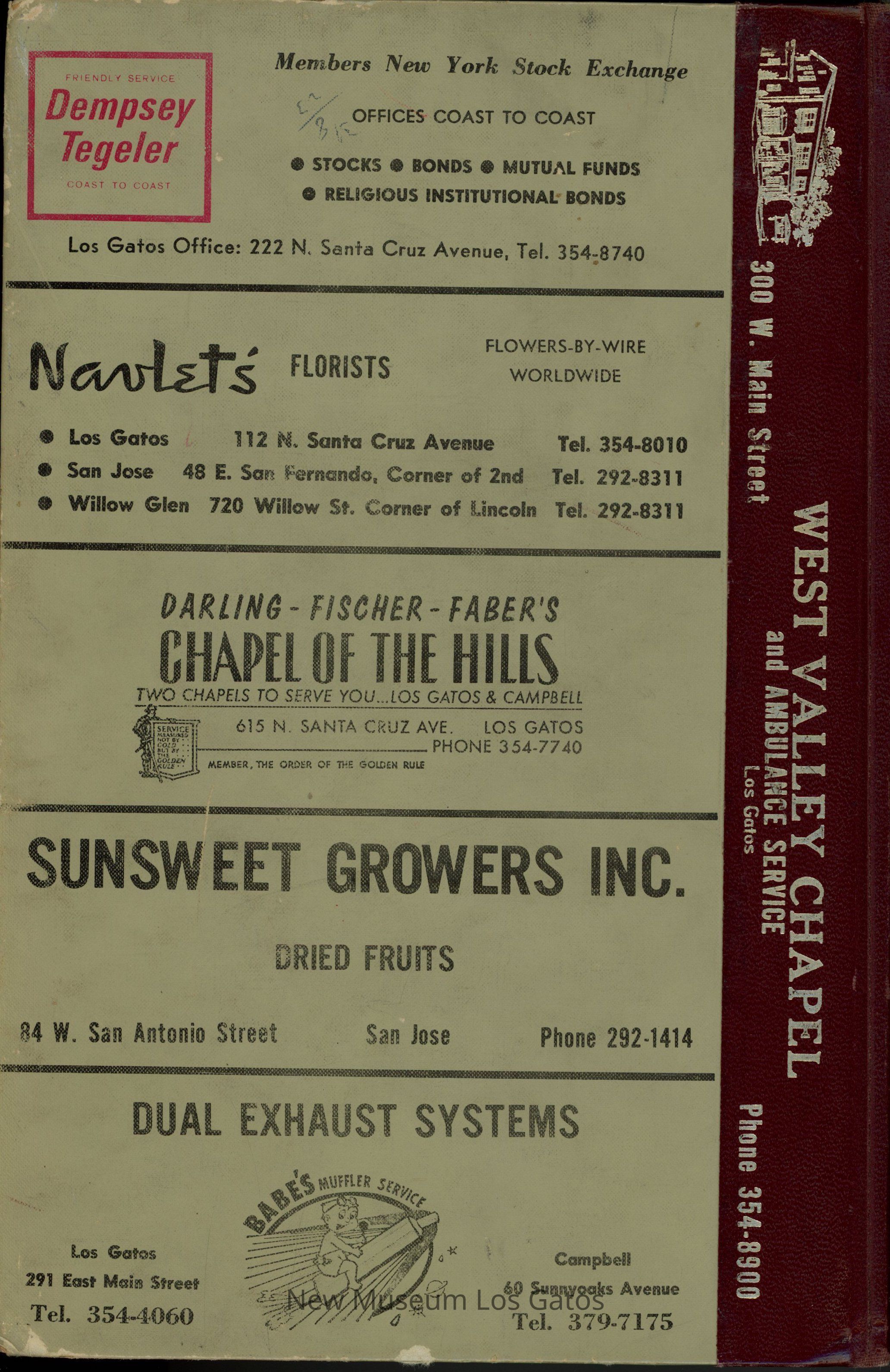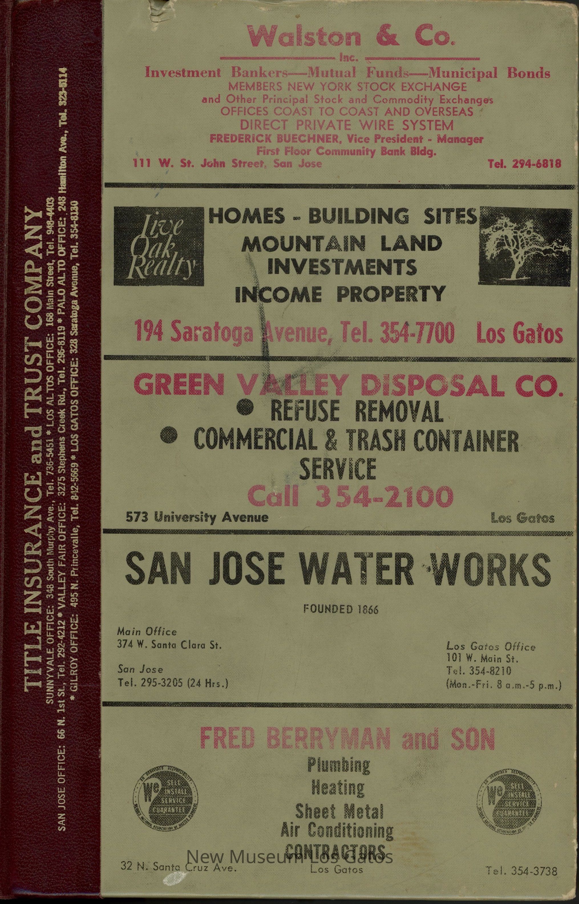 CALIFORNIA / POLK'S LOS GATOS CITY DIRECTORY 1967 Including MONTE SERENO, CAMPBELL, and SARATOGA R. L. POLK & CO. PUBLISHERS / SANTA CLARA COUNTY FIRE INSURANCE CO. SECURITY SAVING SERVICE Telephone 292-0566 60 North Second Street San Jose