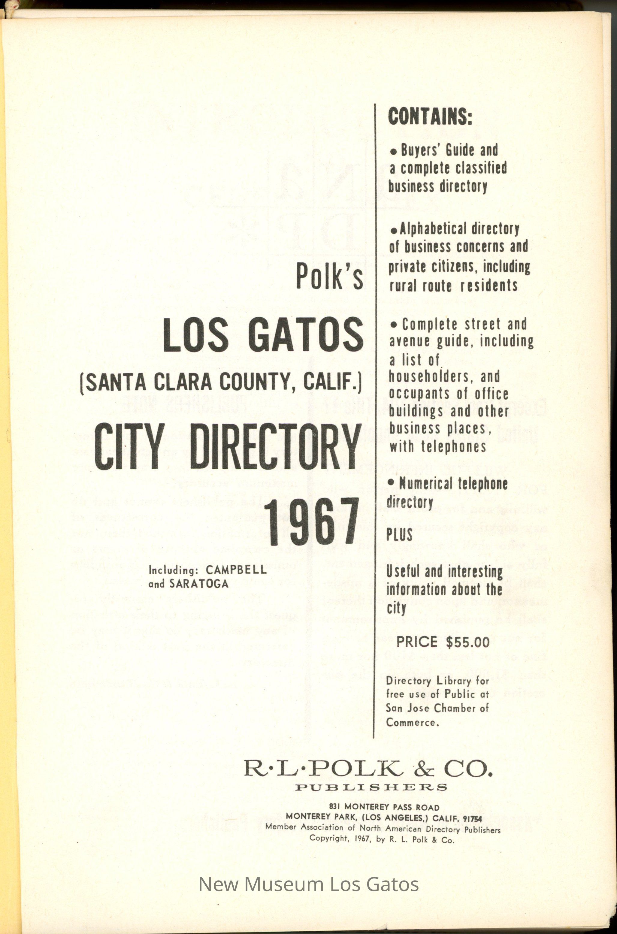 Polk's Los Gatos City Directory, 1967Entry/Object ID