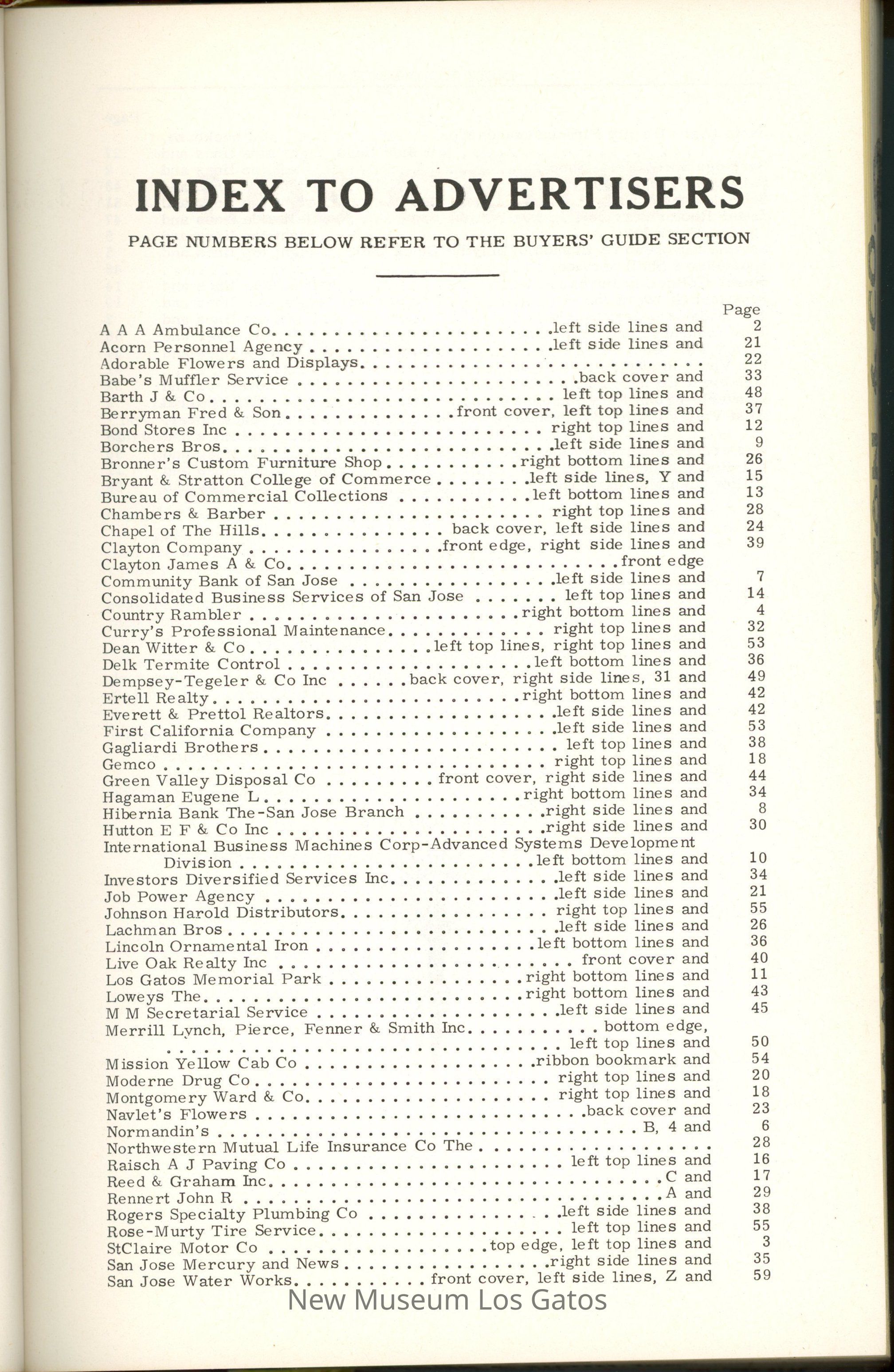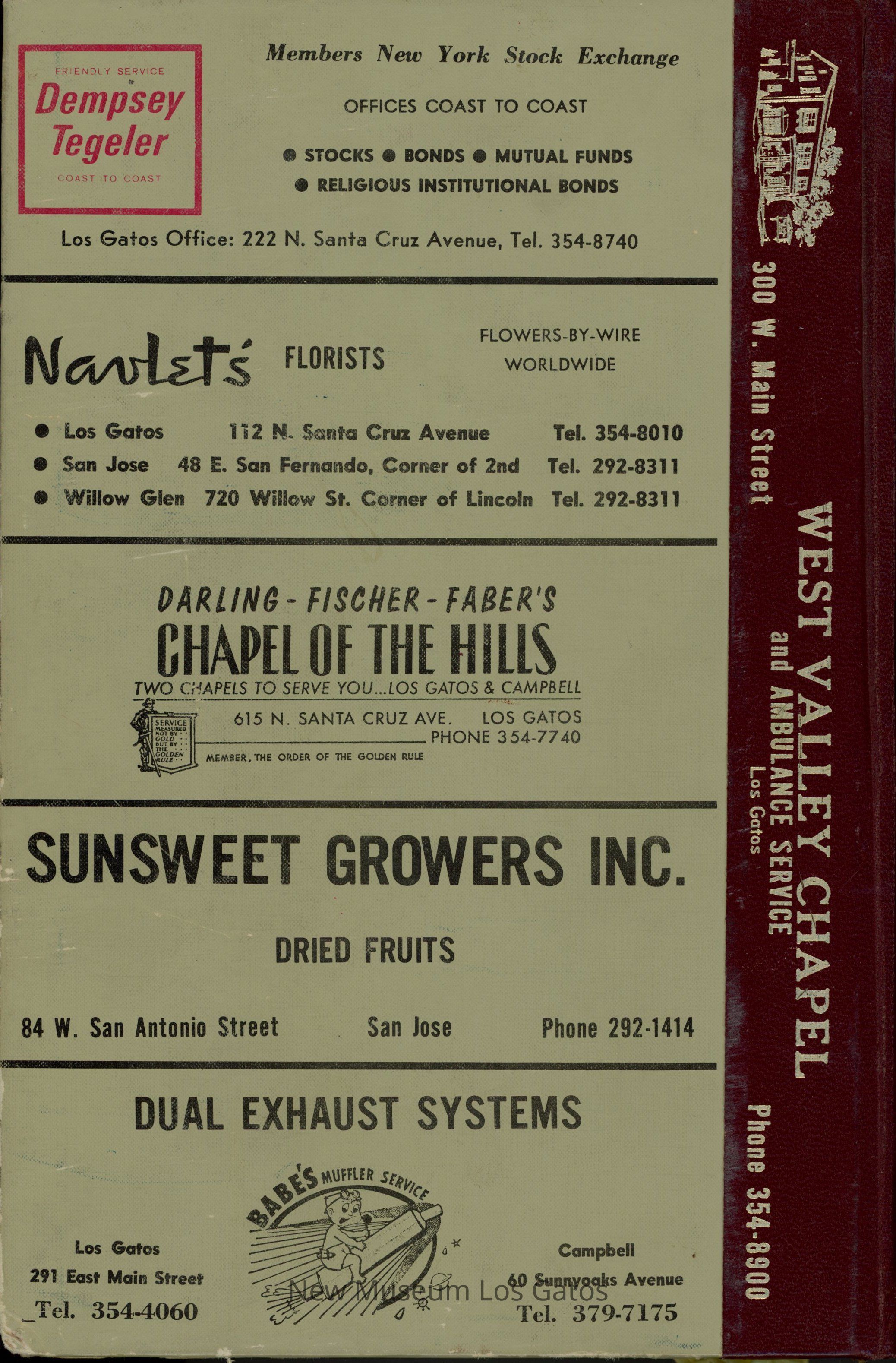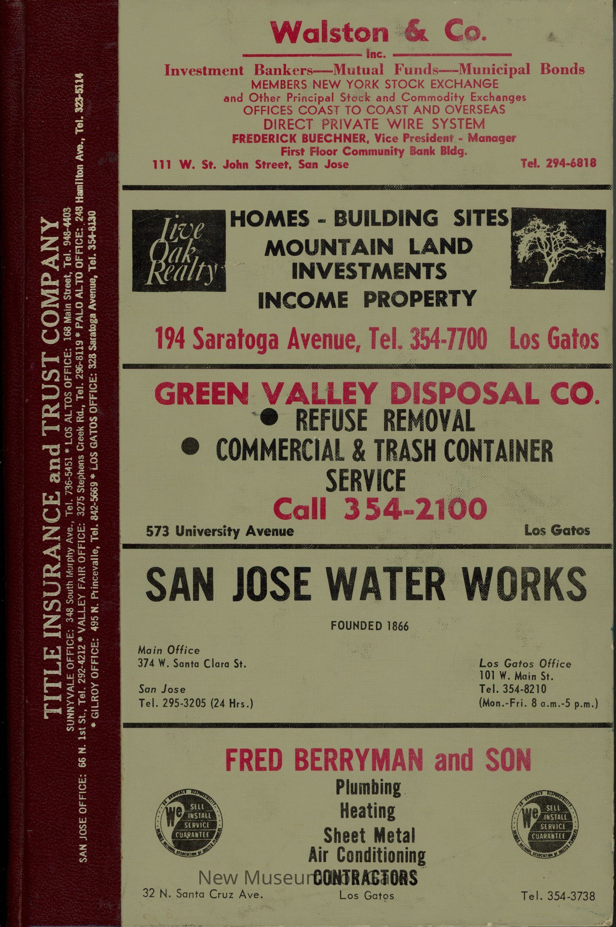 CALIFORNIA / POLK'S LOS GATOS CITY DIRECTORY 1967 Including MONTE SERENO, CAMPBELL, and SARATOGA R. L. POLK & CO. PUBLISHERS / SANTA CLARA COUNTY FIRE INSURANCE CO. SECURITY SAVING SERVICE Telephone 292-0566 60 North Second Street San Jose
