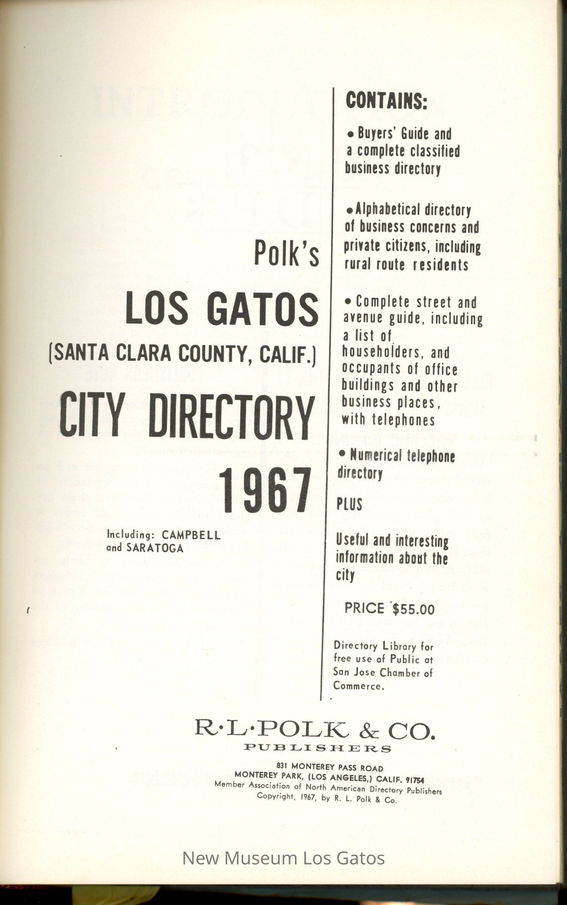 Polk's Los Gatos City Directory, 1967Entry/Object ID