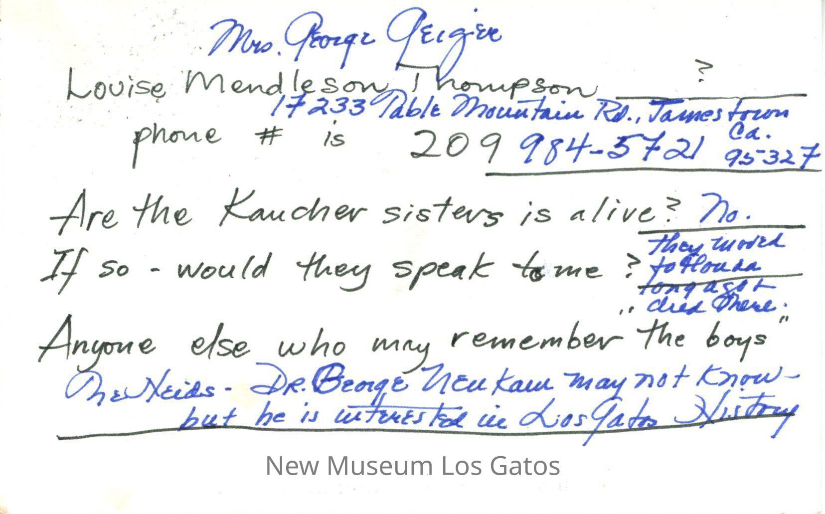The Zeids - Dr. George {unintelligible} may not know - but he is interested in Los Gatos HistoryLanguage
