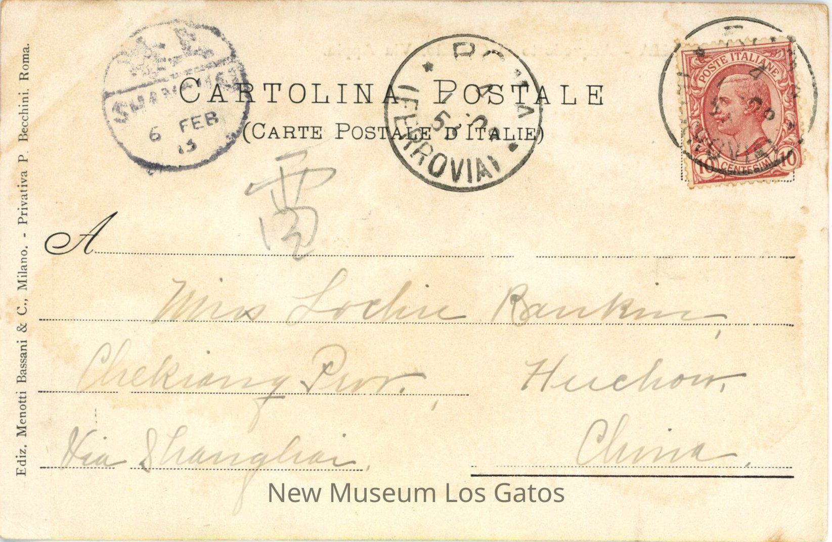 It is difficult to make out what the original postmark in Italy says, but the postmark in Shanghai is more legible.Transcription
