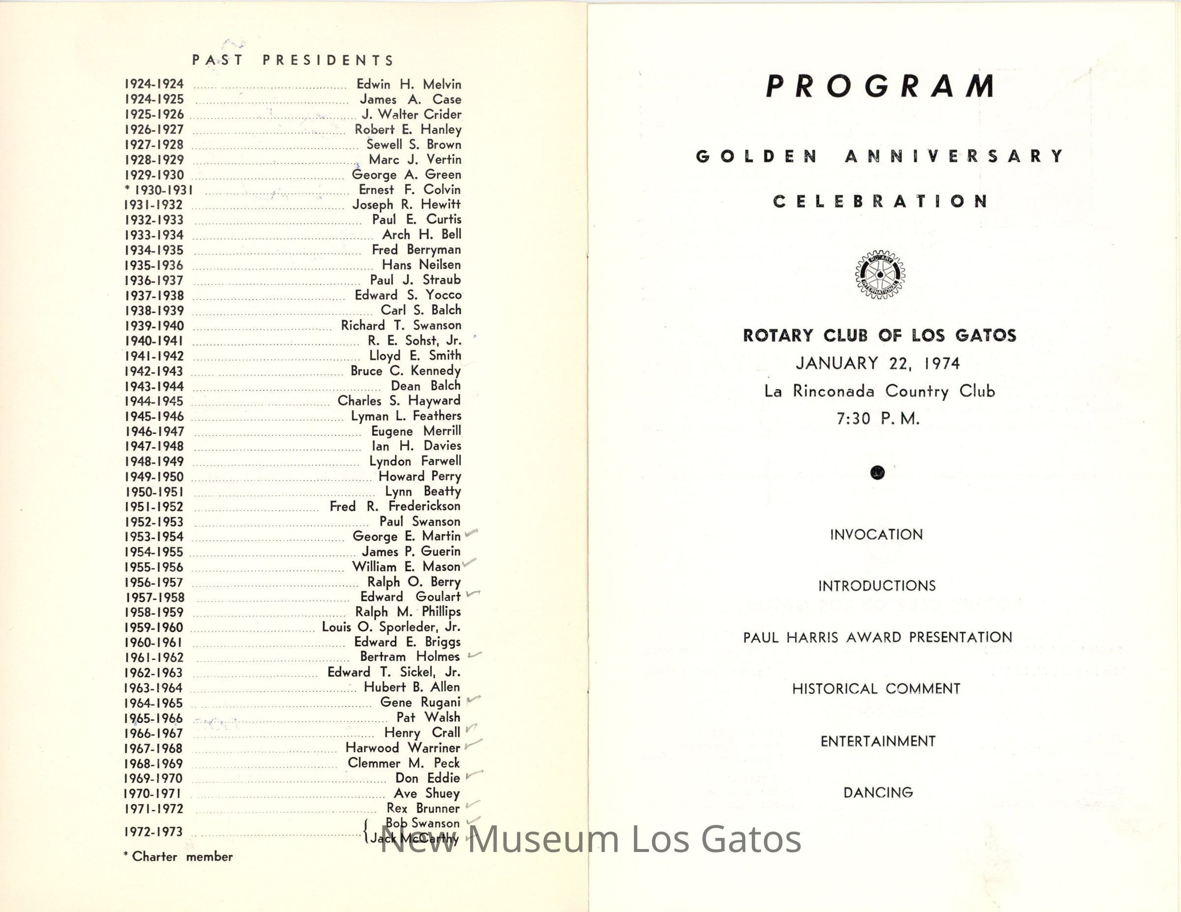 Rotary Club of Los Gatos 50th Anniversary ProgramEntry/Object ID