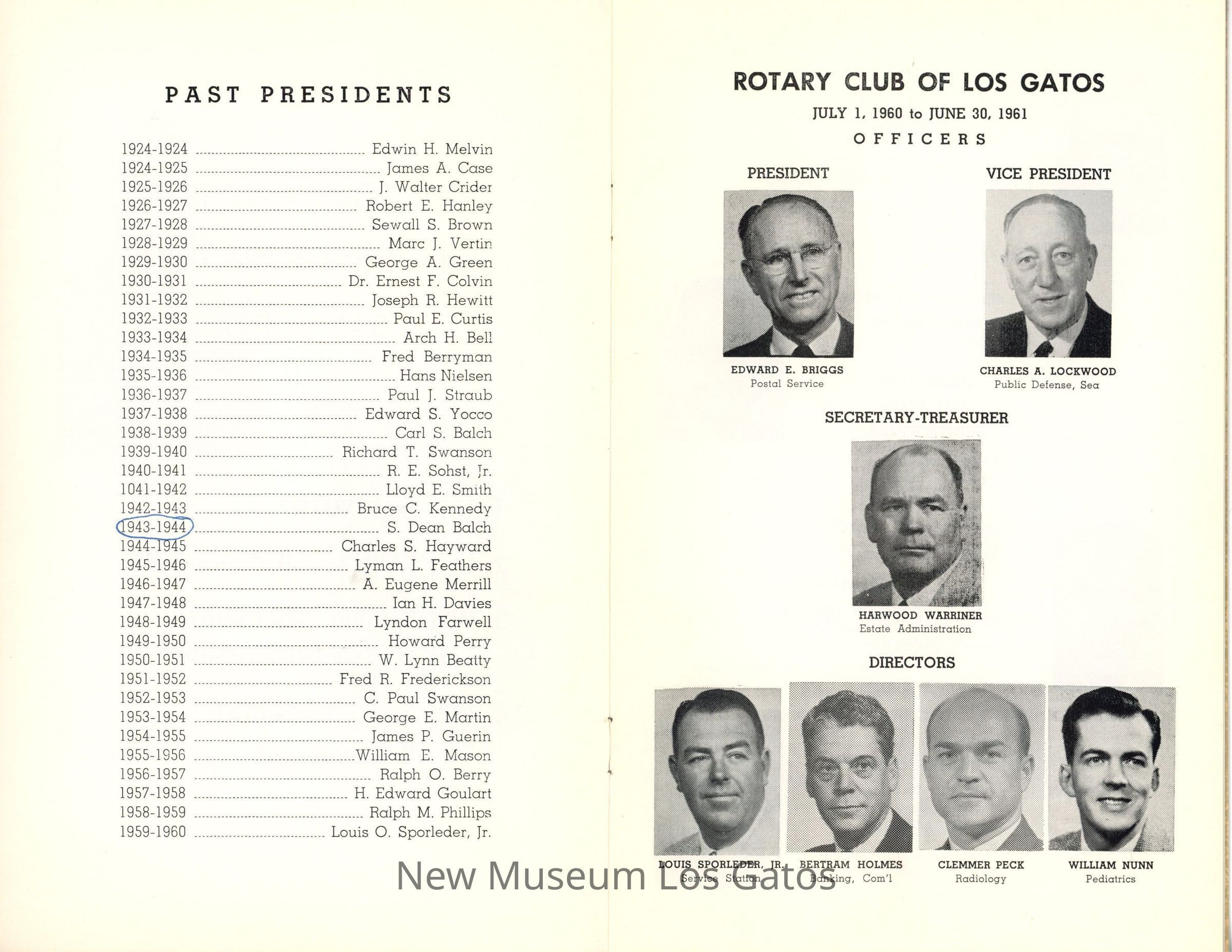 Rotary Club of Los Gatos Roster BookletEntry/Object ID