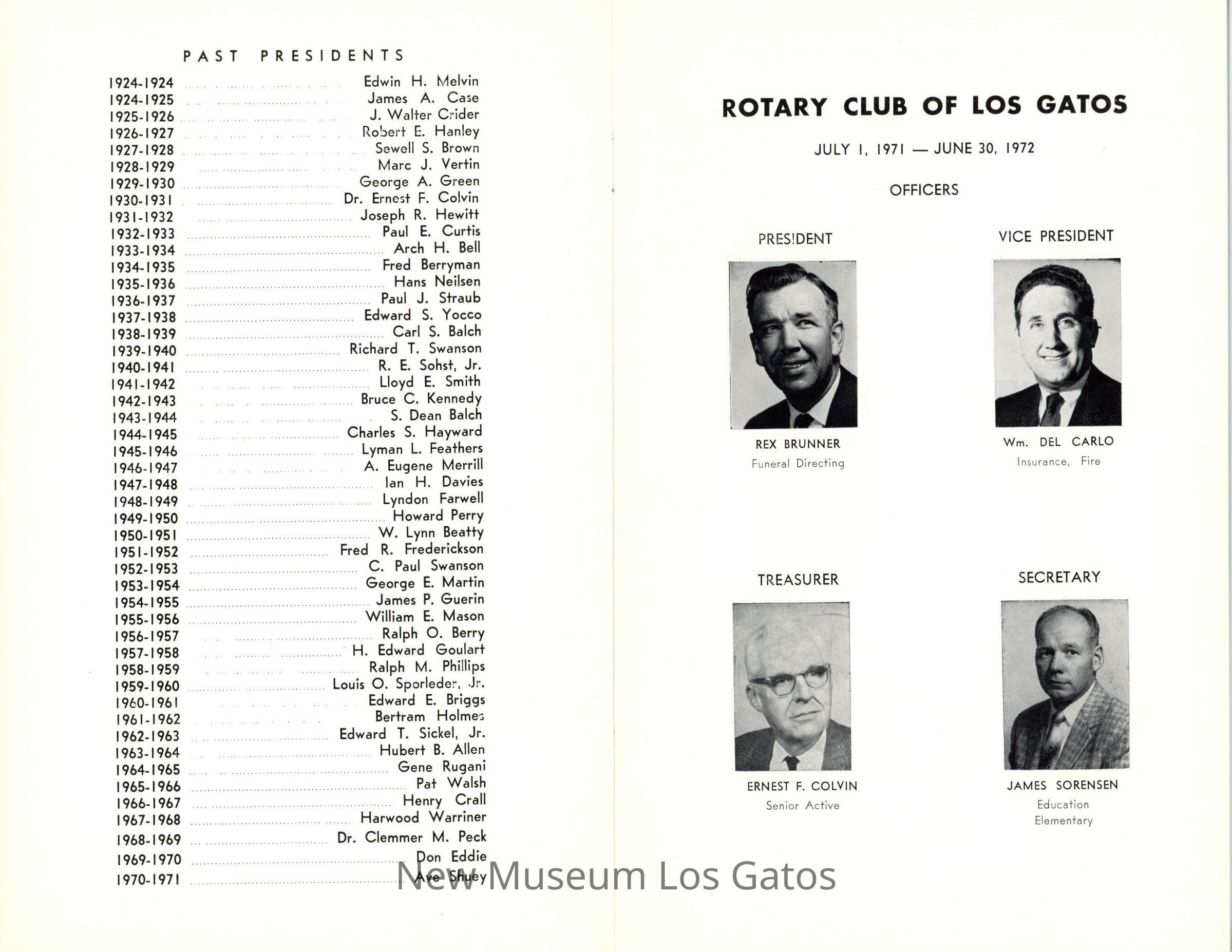 Rotary Club of Los Gatos Roster BookletEntry/Object ID
