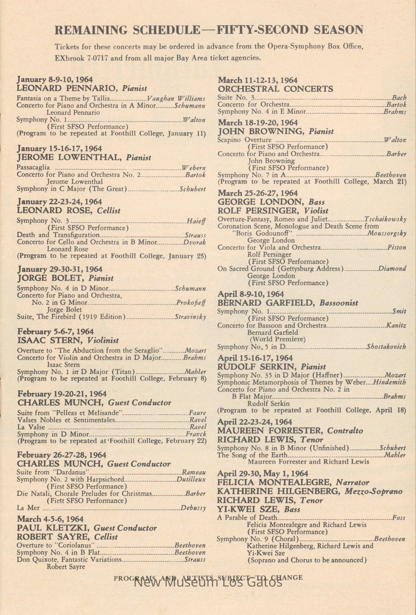 San Francisco Symphony ProgramEntry/Object ID