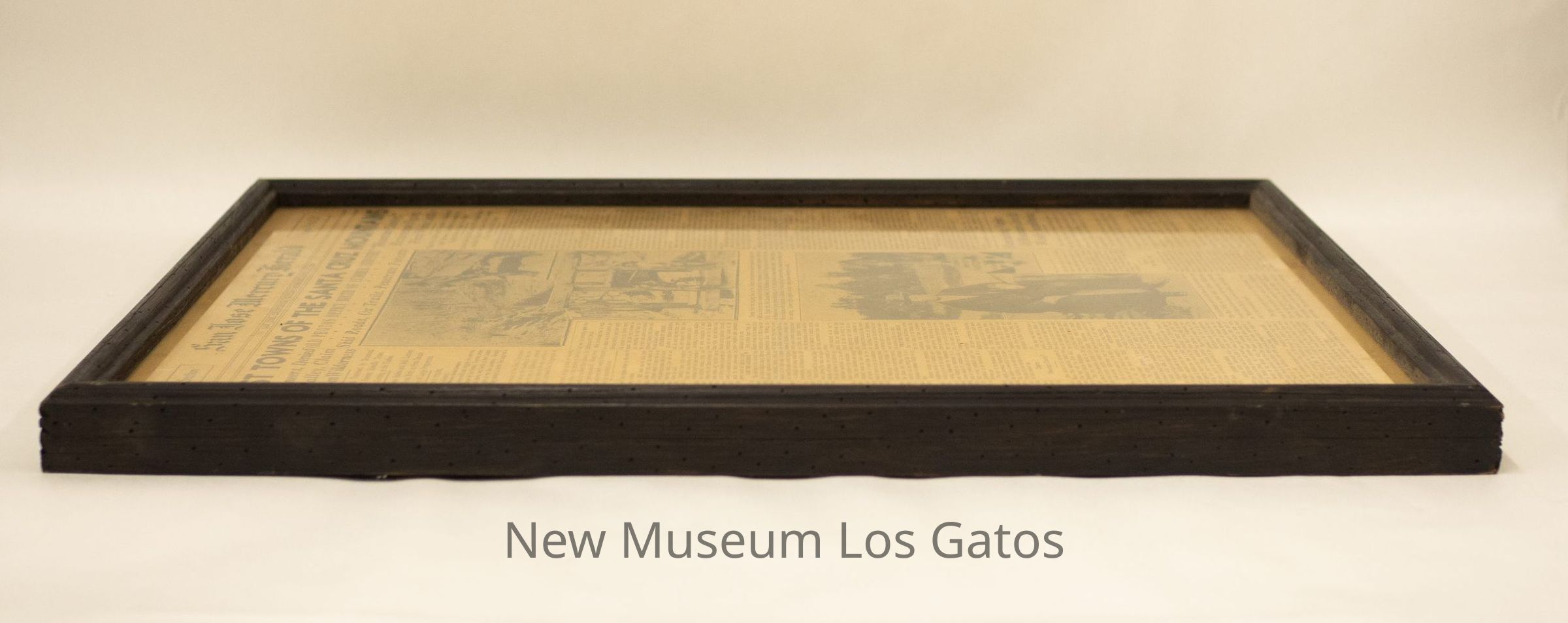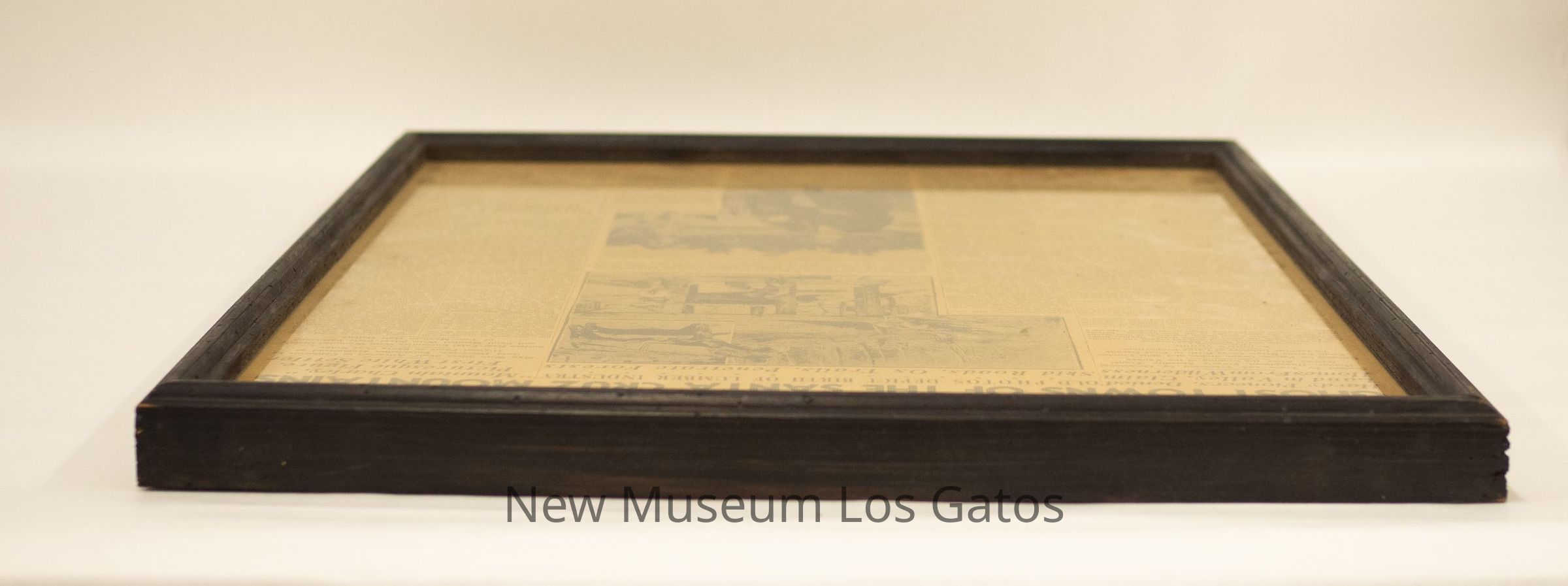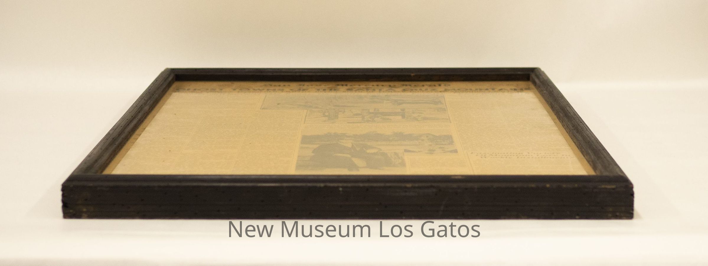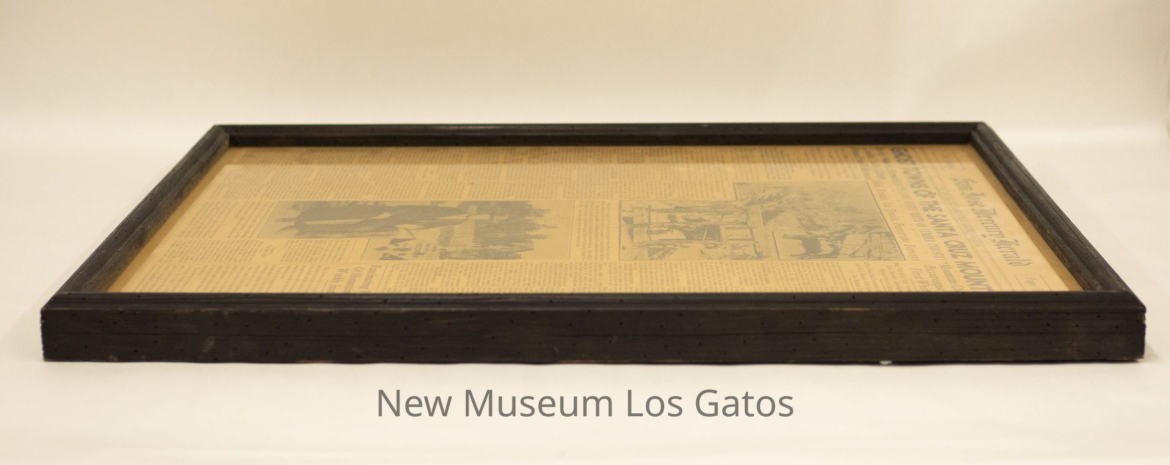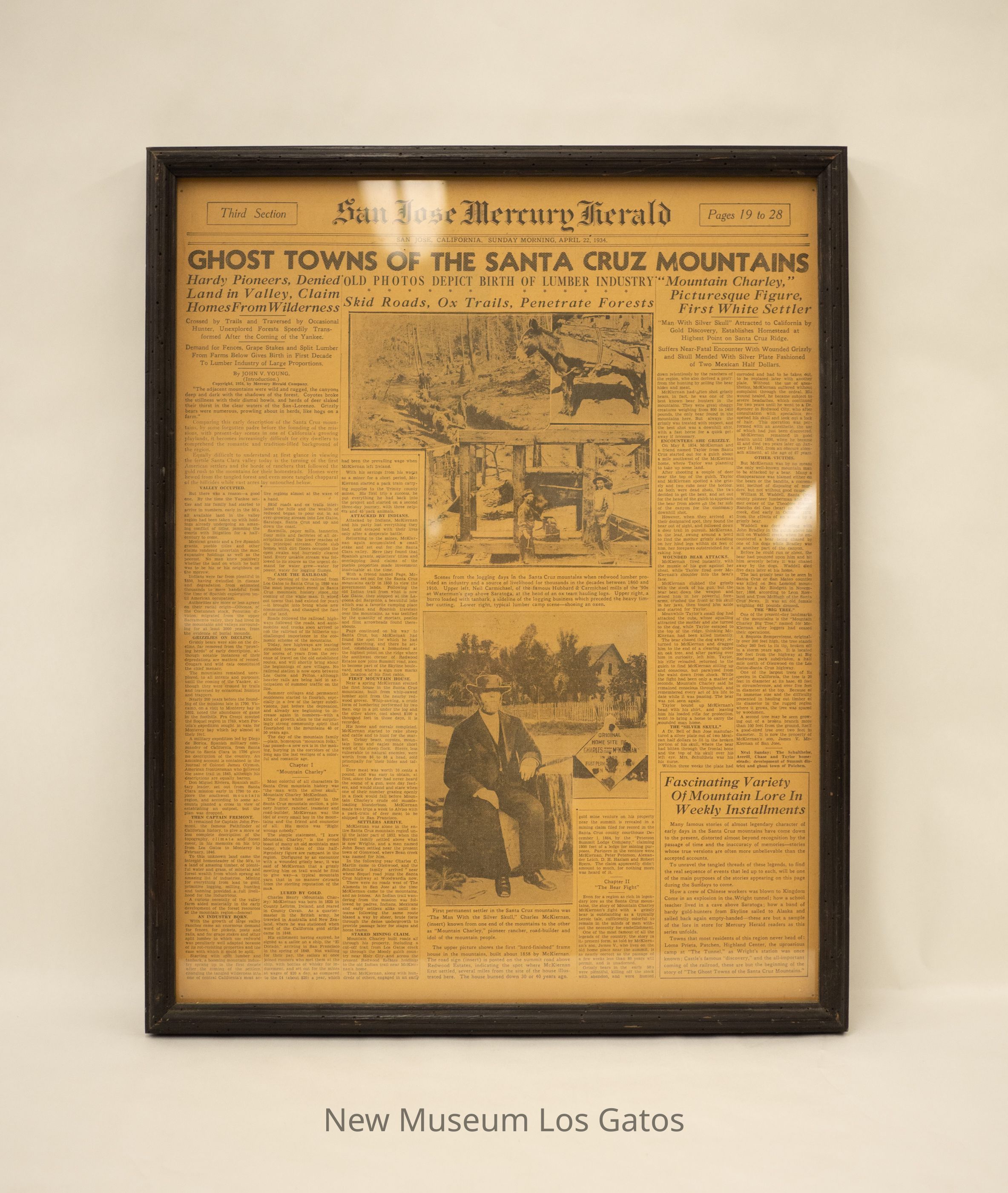 A framed newspaper page reporting on the ghost towns of the Santa Cruz mountains and "Mountain Charley".Collection